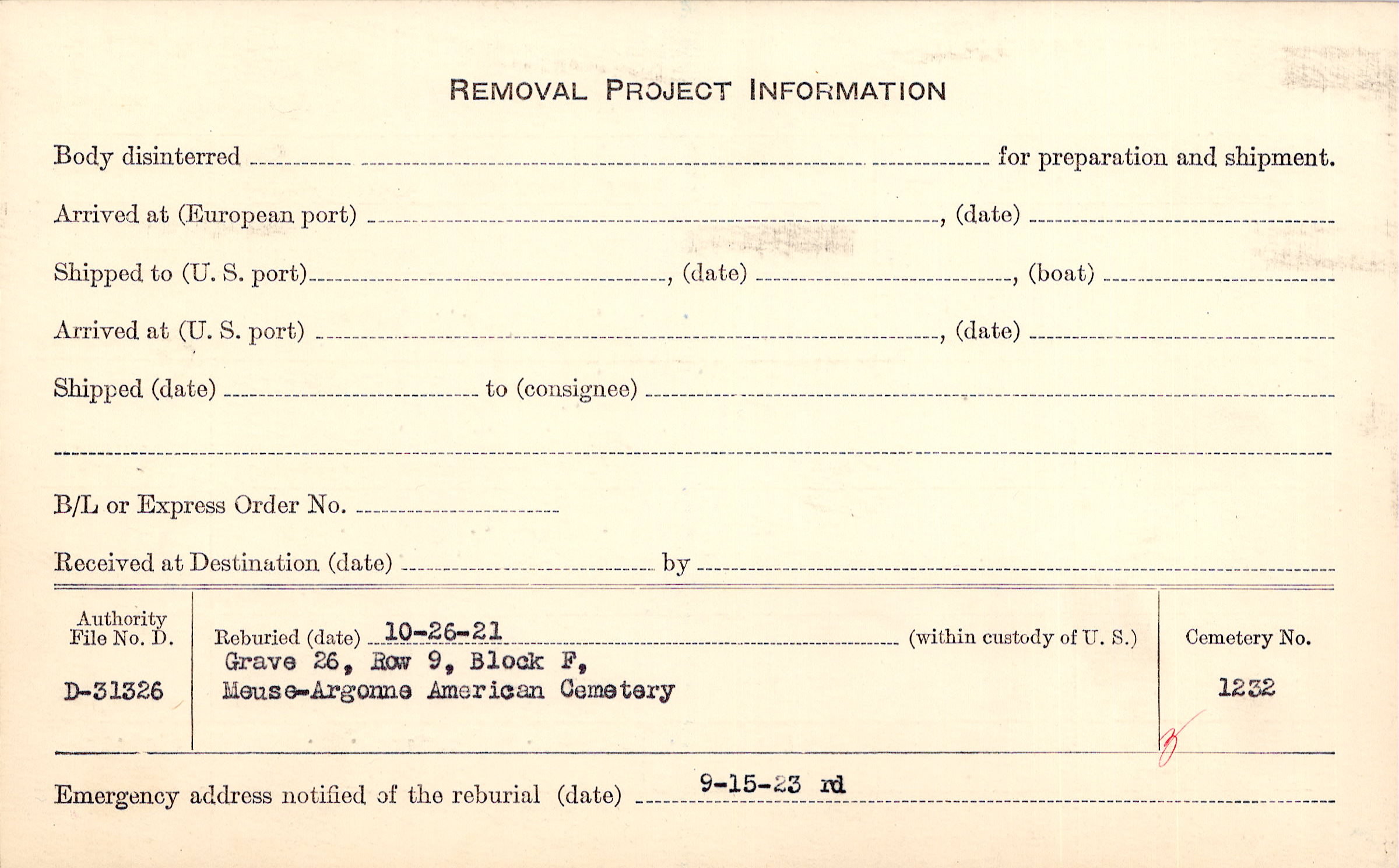 | Permanent Burial in Foreign Cemetery |