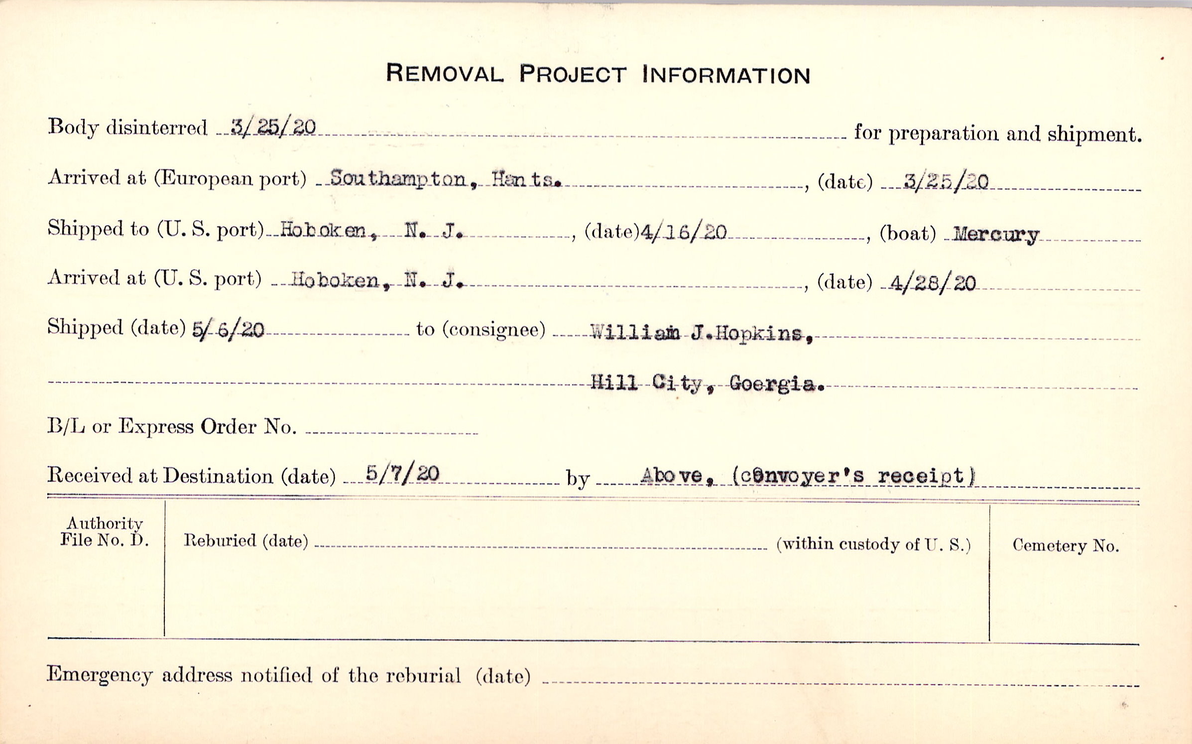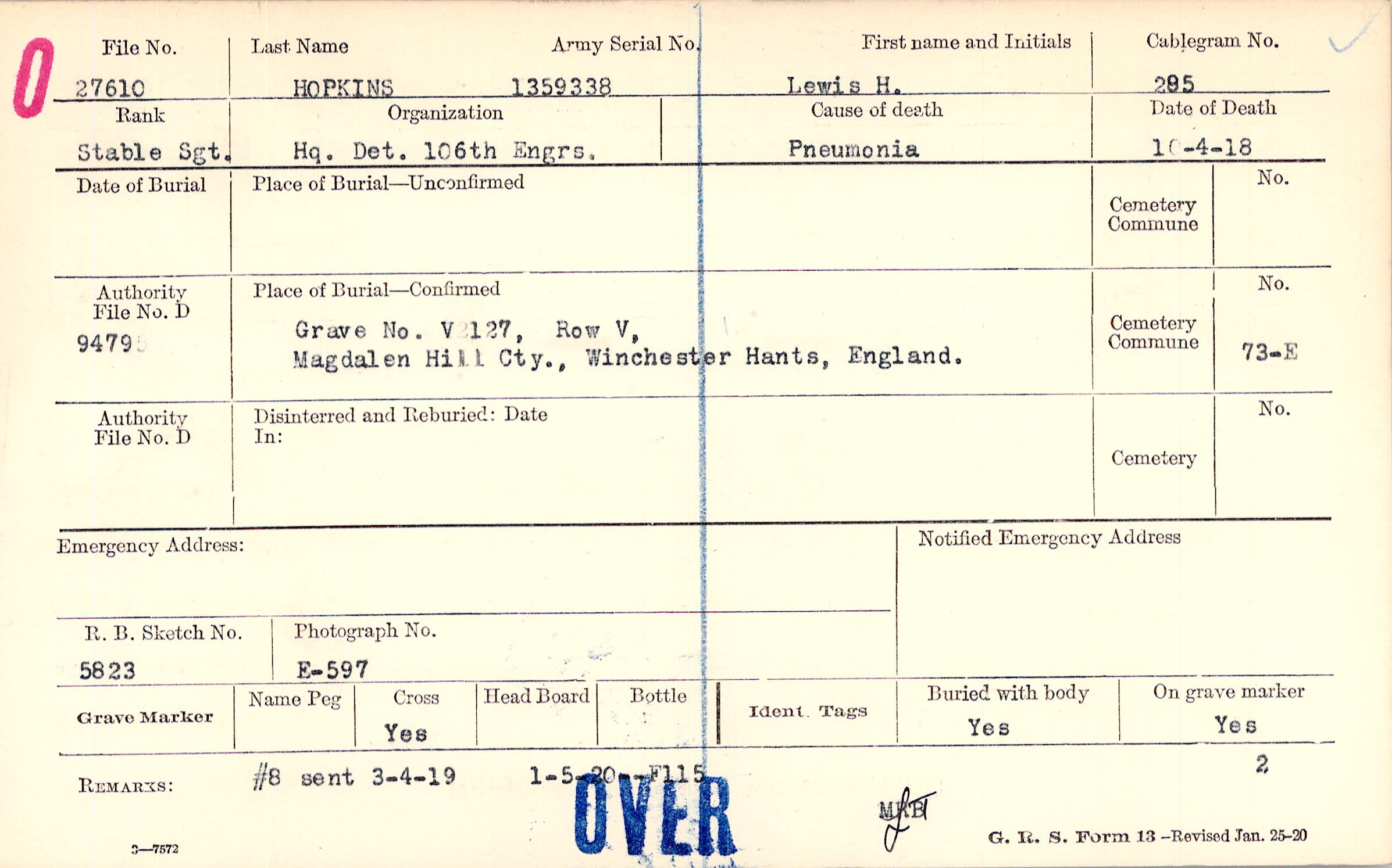 grave V 127, Row V, Magdalen Hill Cty., Winchester Hants, England.