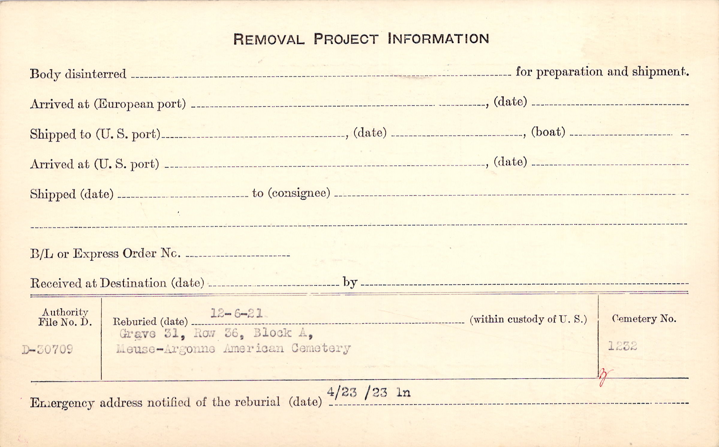 Grave #1, Plot A, Amer. B/A Cty., Montfaucon, Meuse