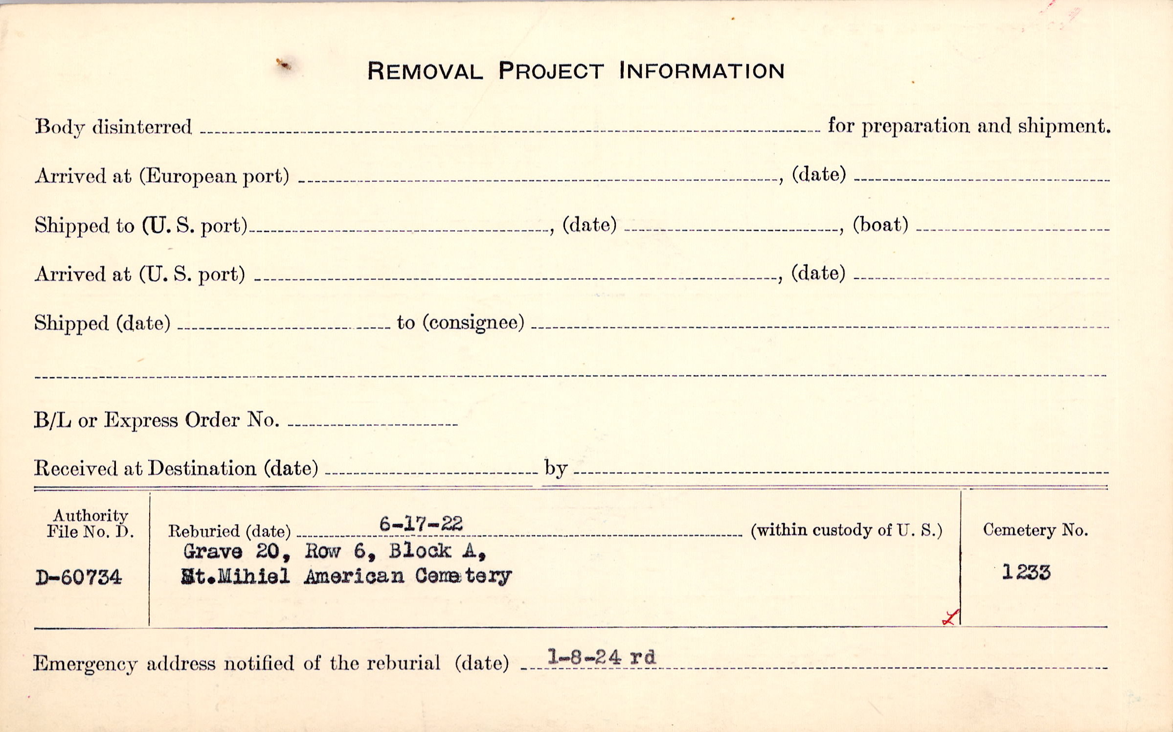 | Permanent Burial in Foreign Cemetery |