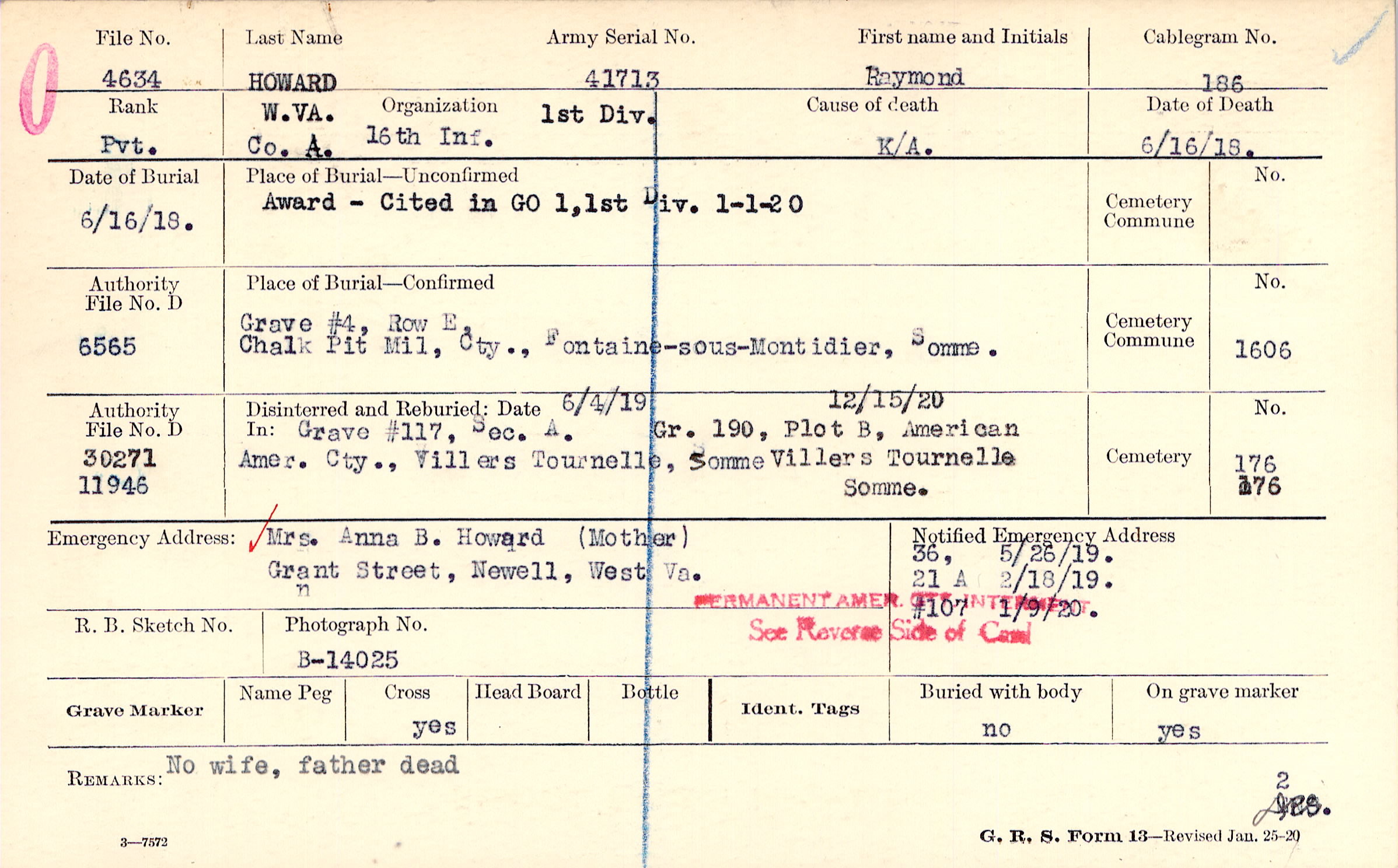 Mrs. Anna B. Howard (Mother), Grant Street, Newell, West Va.