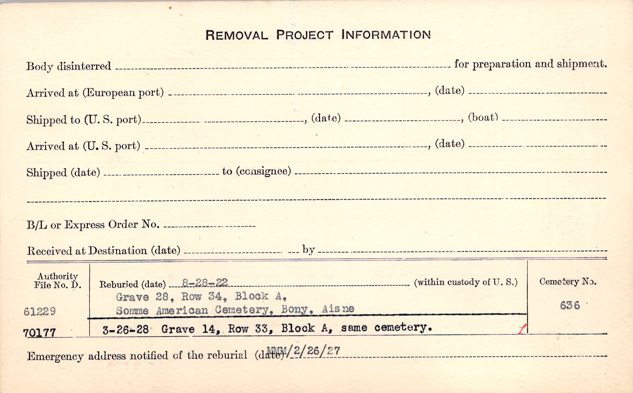 Prior Burial in Foreign Cemetery |