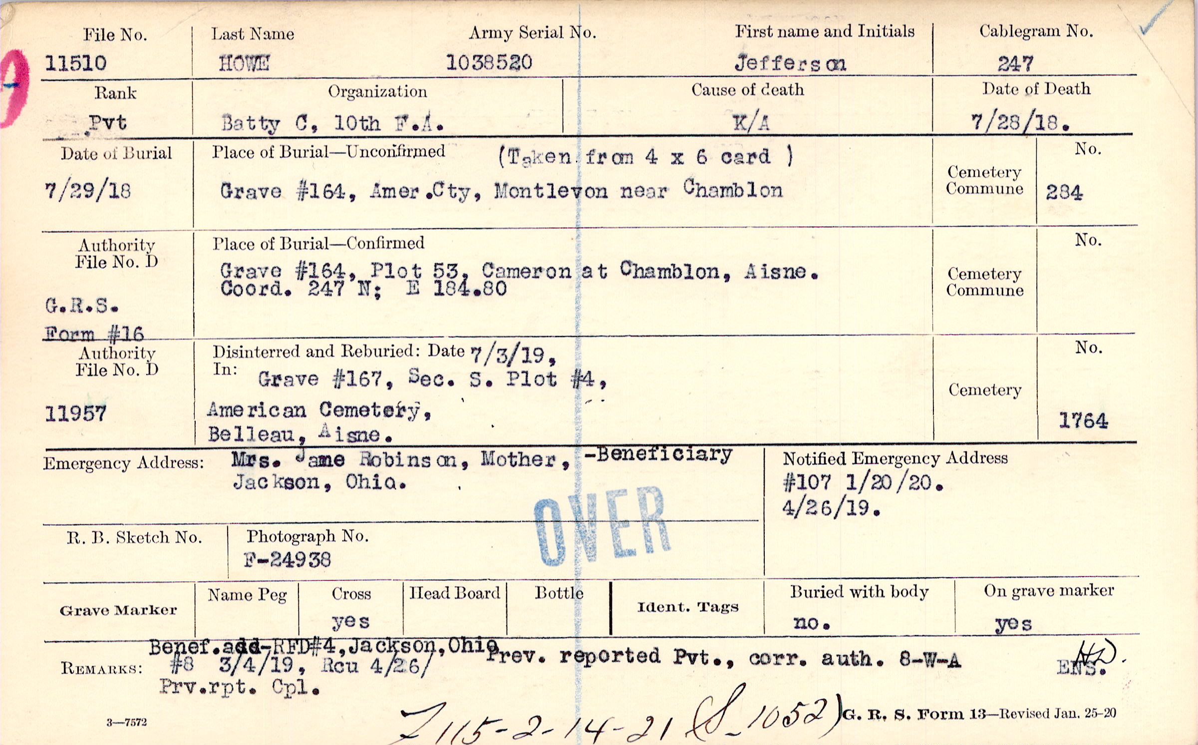 Mrs. Jane Robinson, Mother, Jackson, Ohio., Beneficiary