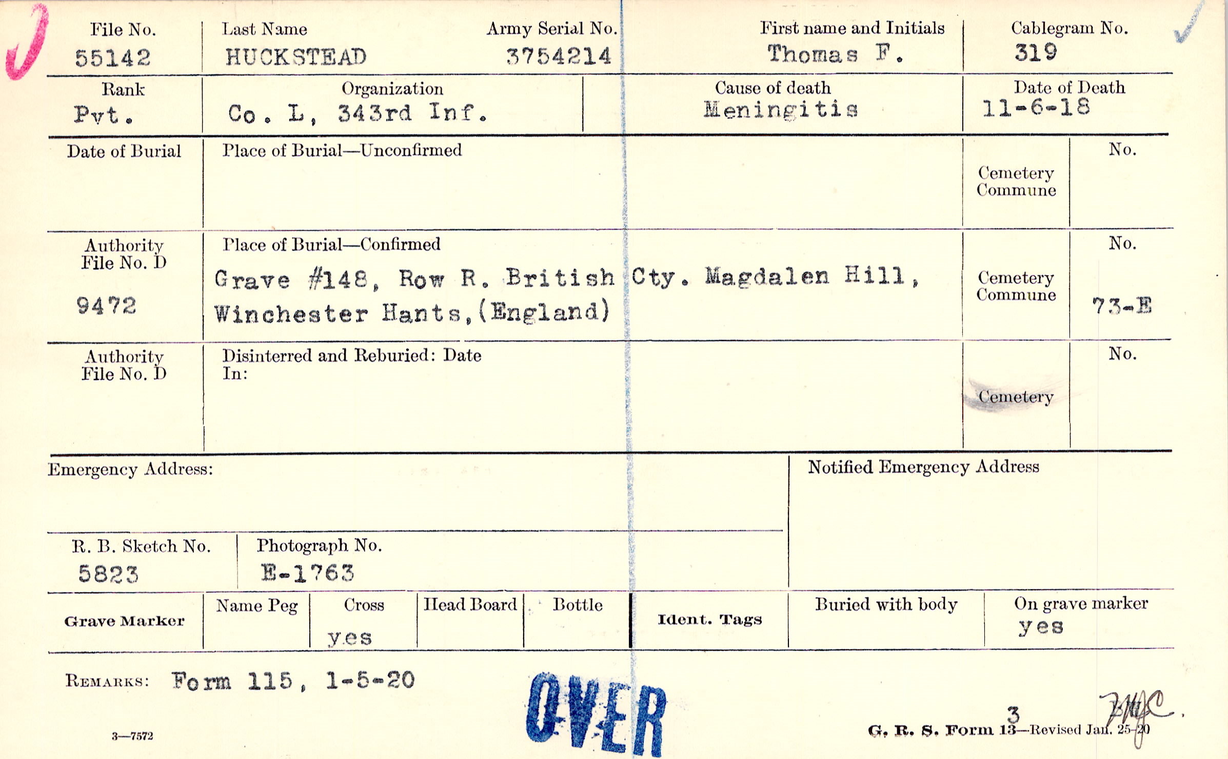 Grave #148, Row R., British Cty., Magdalen Hill, Winchester, Hants, England