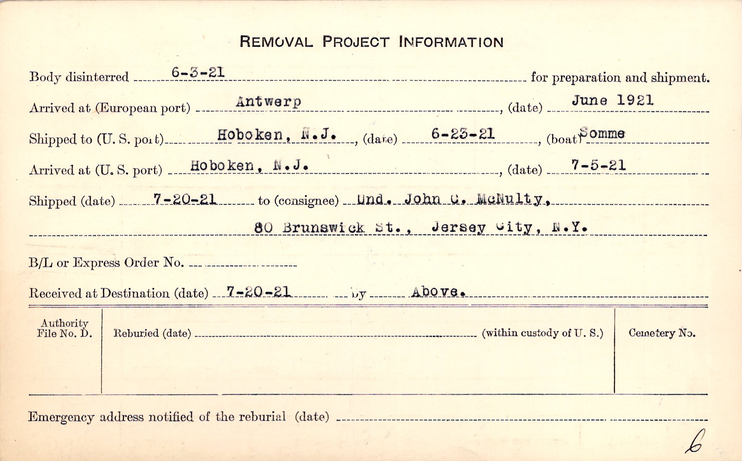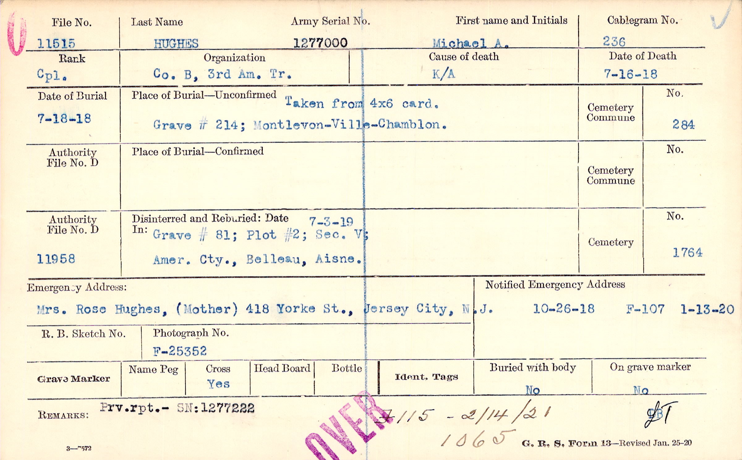 Mrs. Rose Hughes, (Mother), 418 Yorke St., Jersey City, N.J.