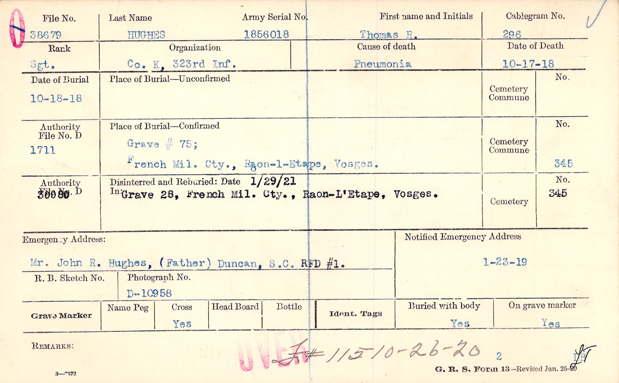 Mr. John R. Hughes, (Father), Duncan, S.C. RFD #1.