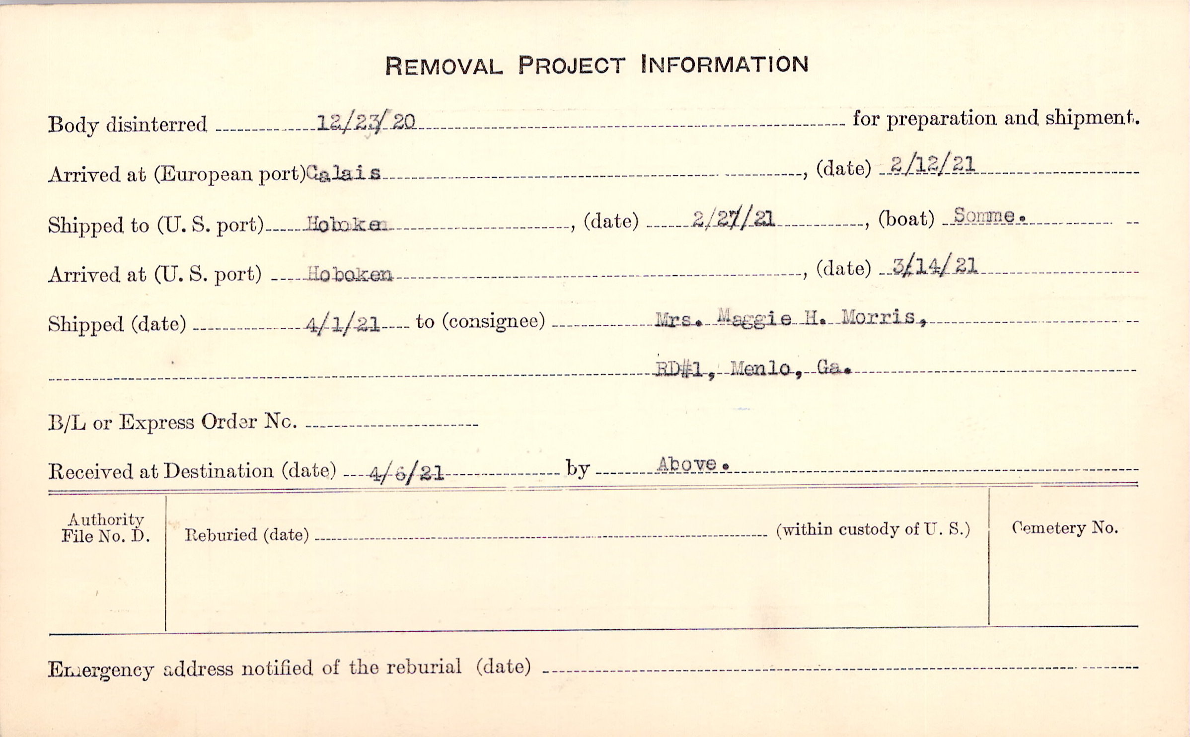 to Mrs. Maggie H. Morris, RD#1, Menlo, Ga.