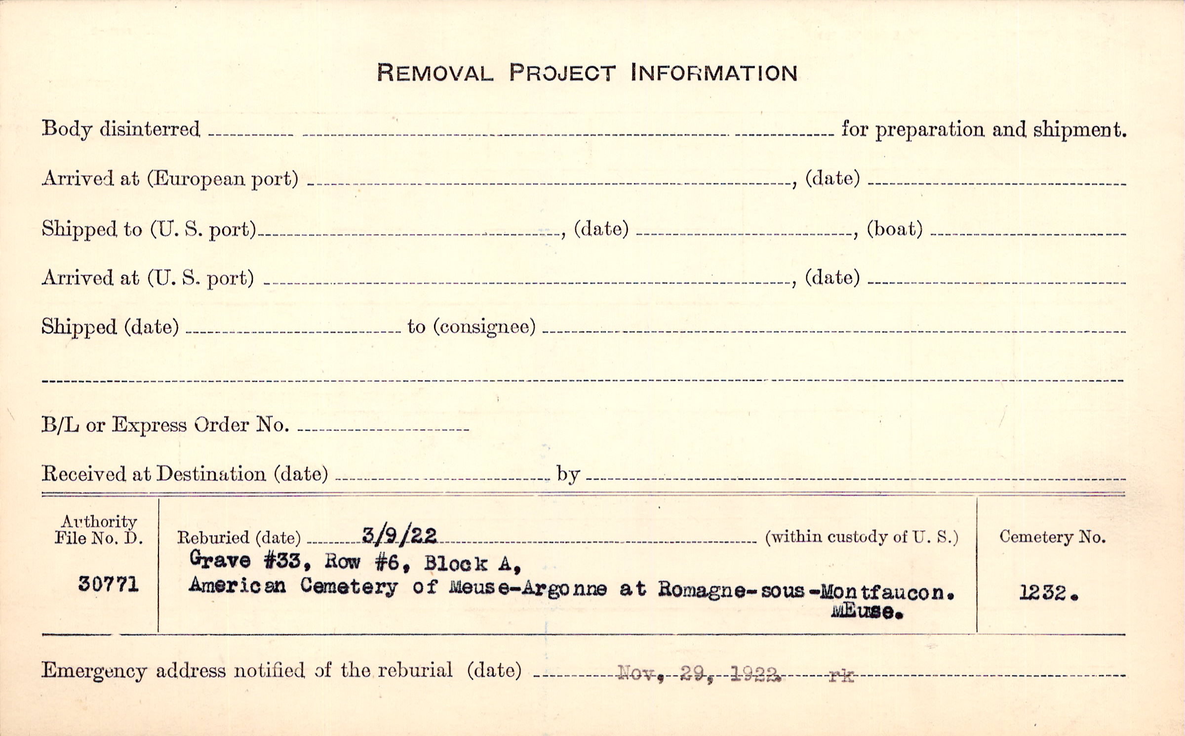 Grave 15, American B/A Cty., ,Romagne-sous-Montfaucon, Meuse.