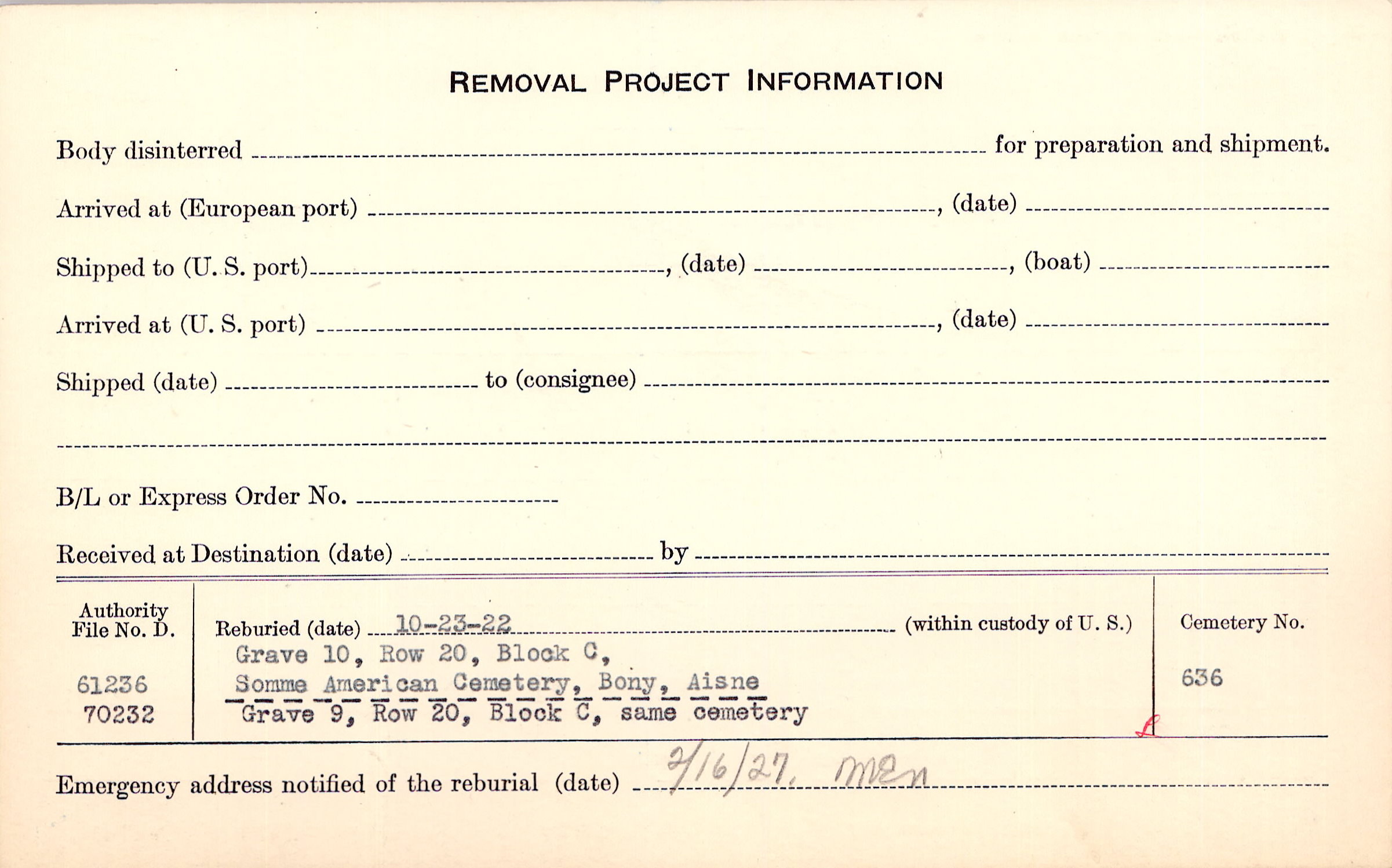 Prior Burial in Foreign Cemetery |