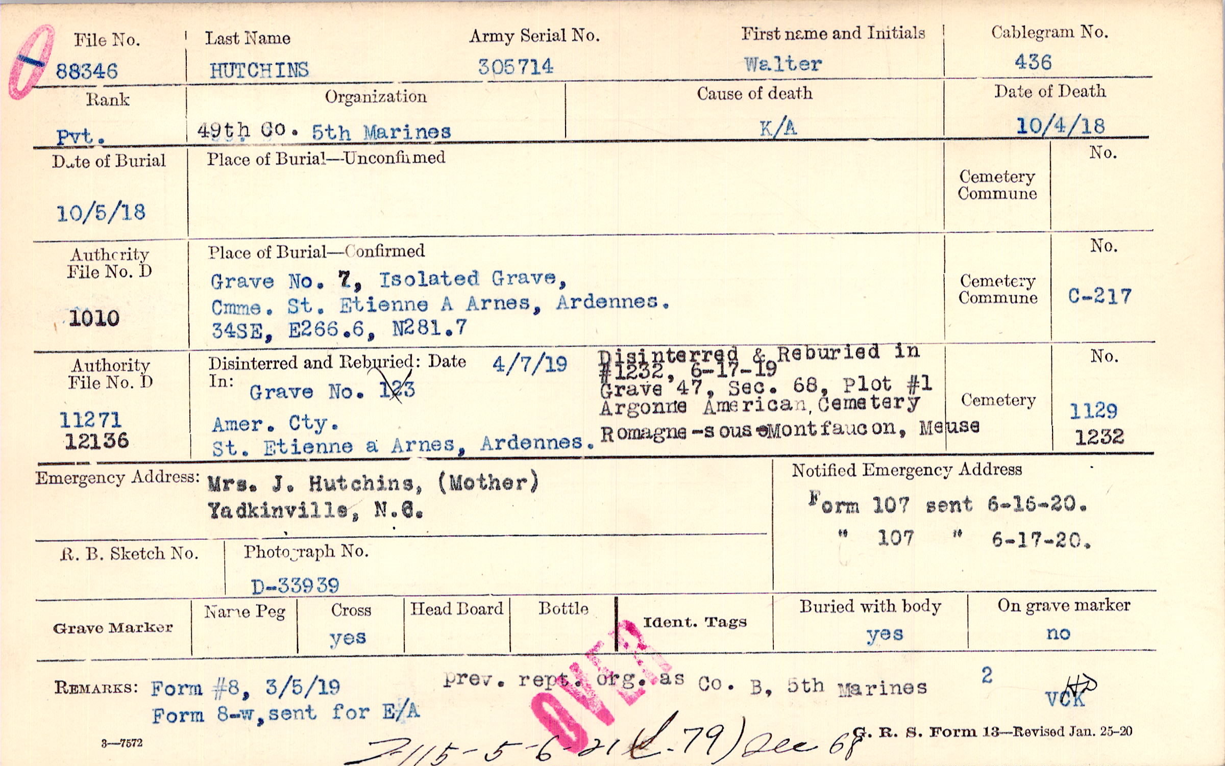 Grave 7, Isolated Grave, Cmme. St. Etienne A Arnes, Ardennes., 34SE