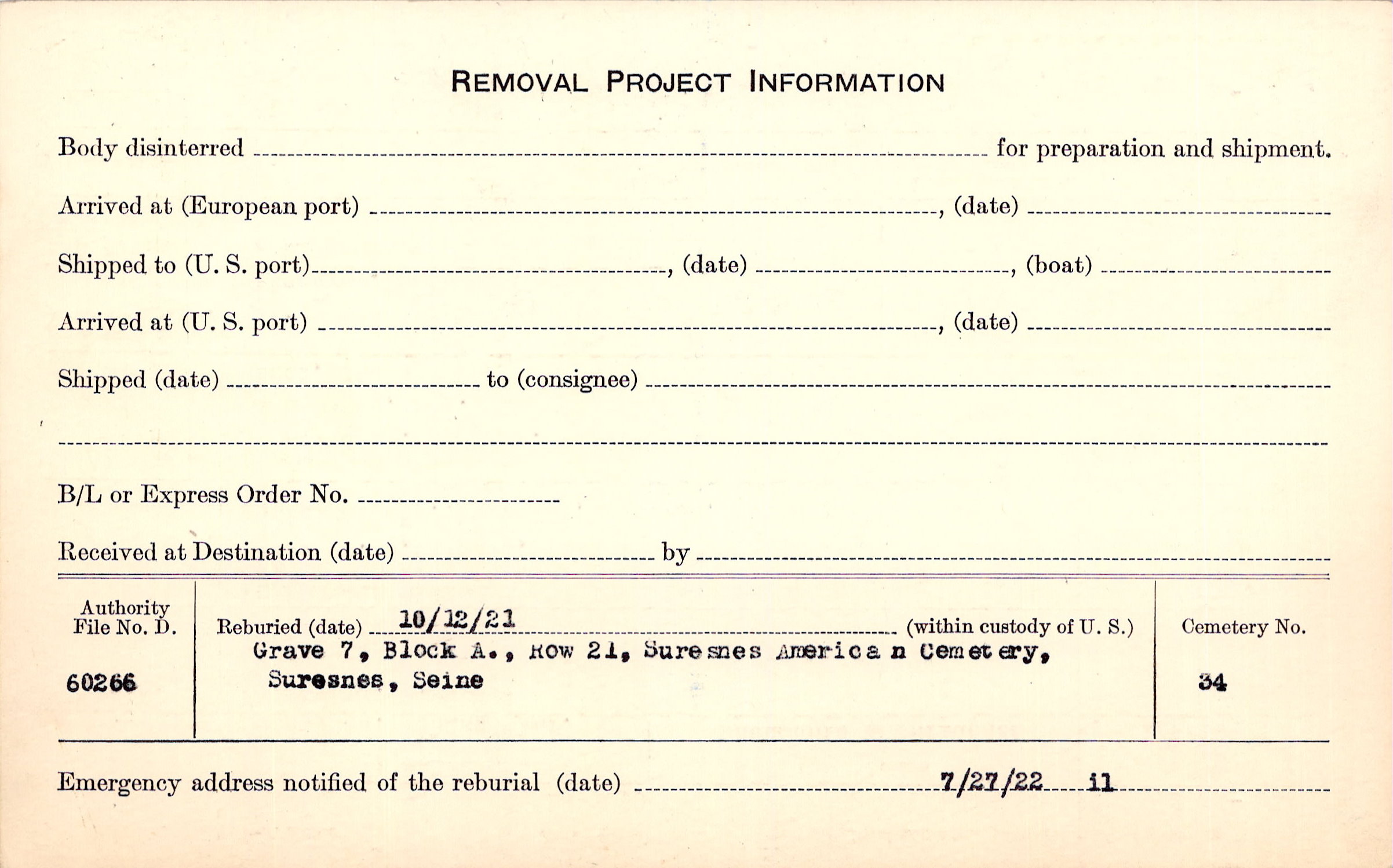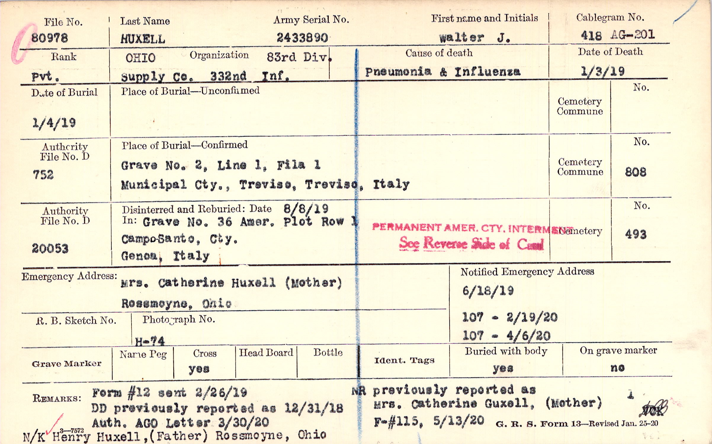 Grave 36, Row 1, Plot American, Campo Santo Cemetery, Genoa, Italy