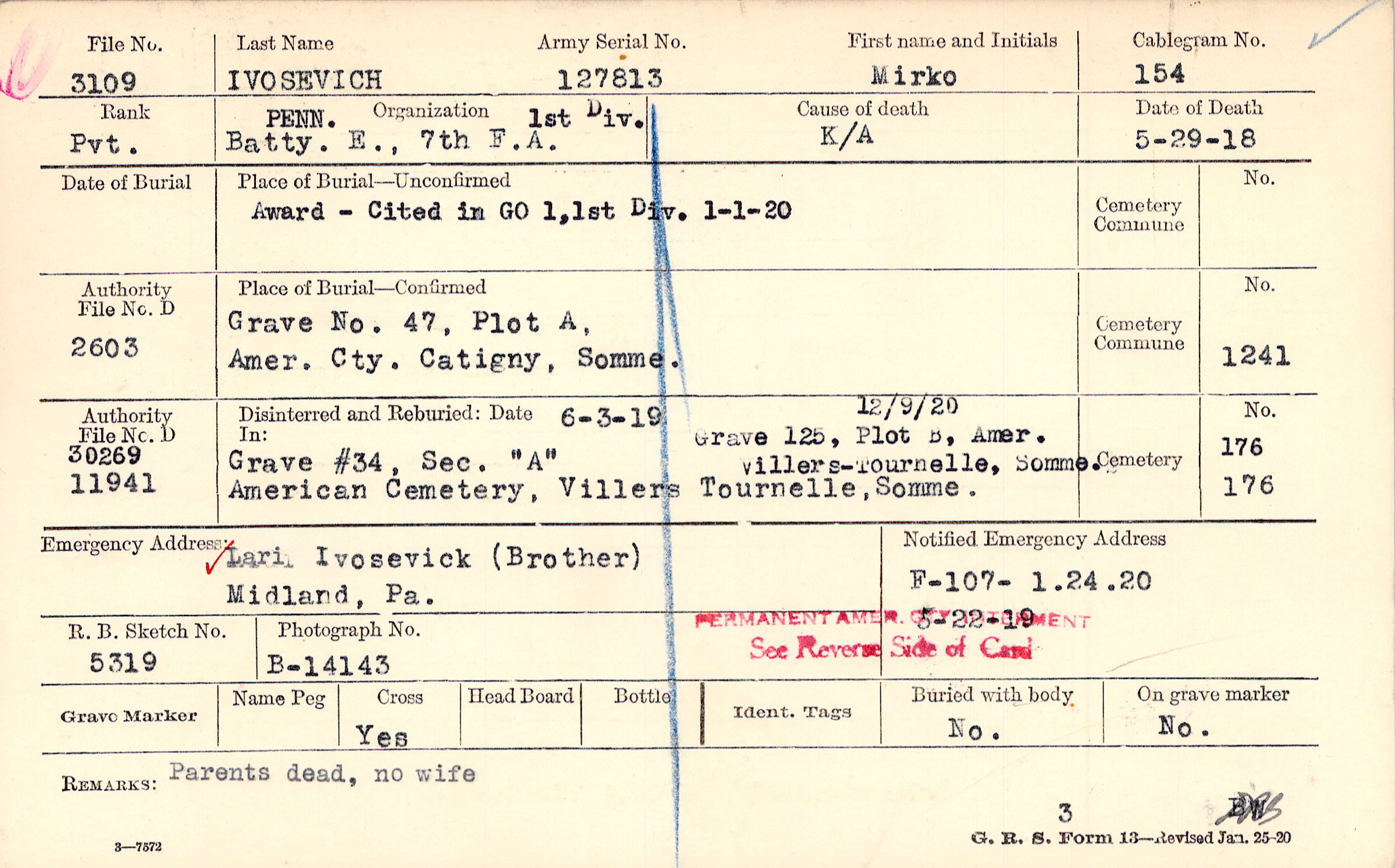 Prior Burial in Foreign Cemetery |