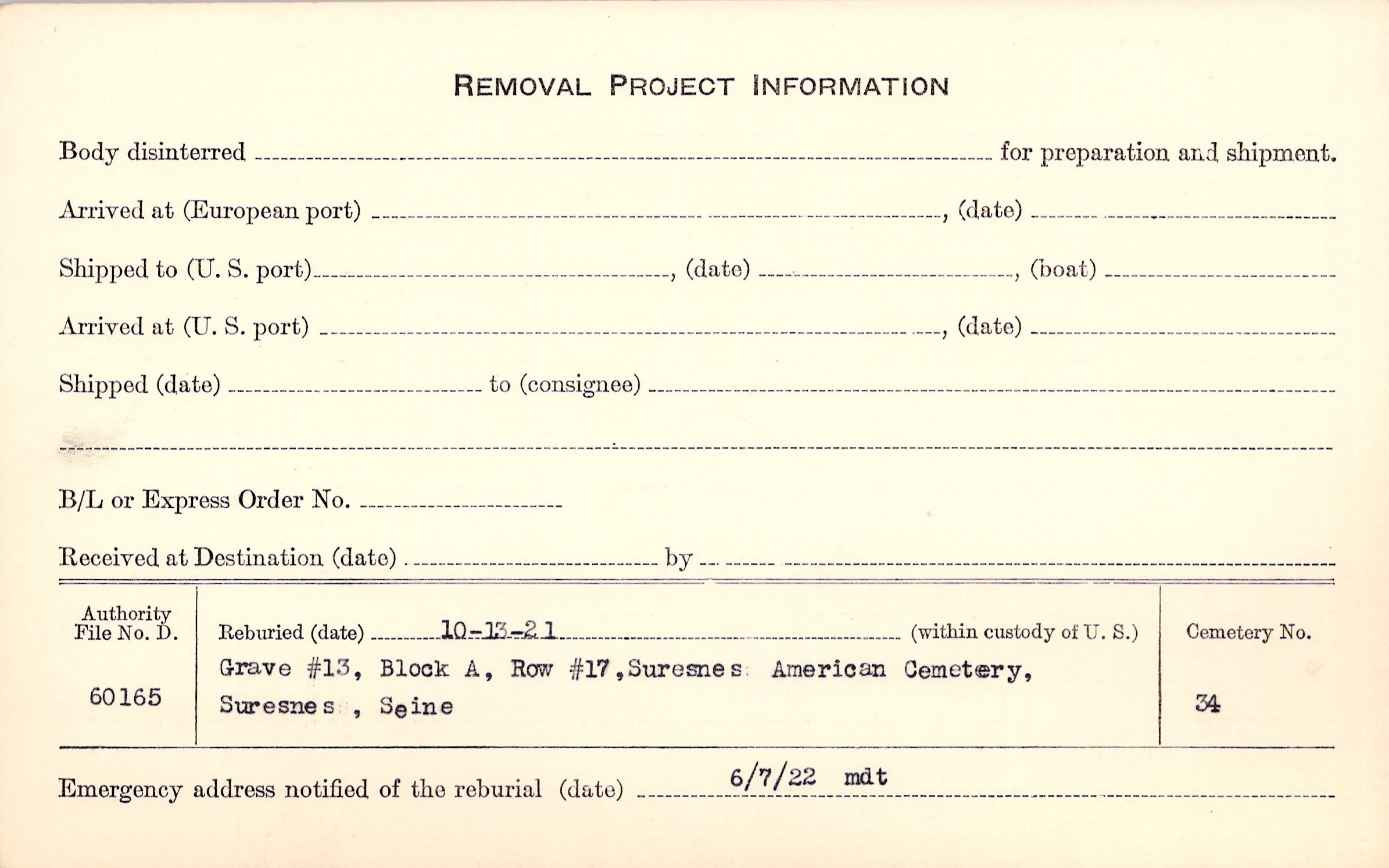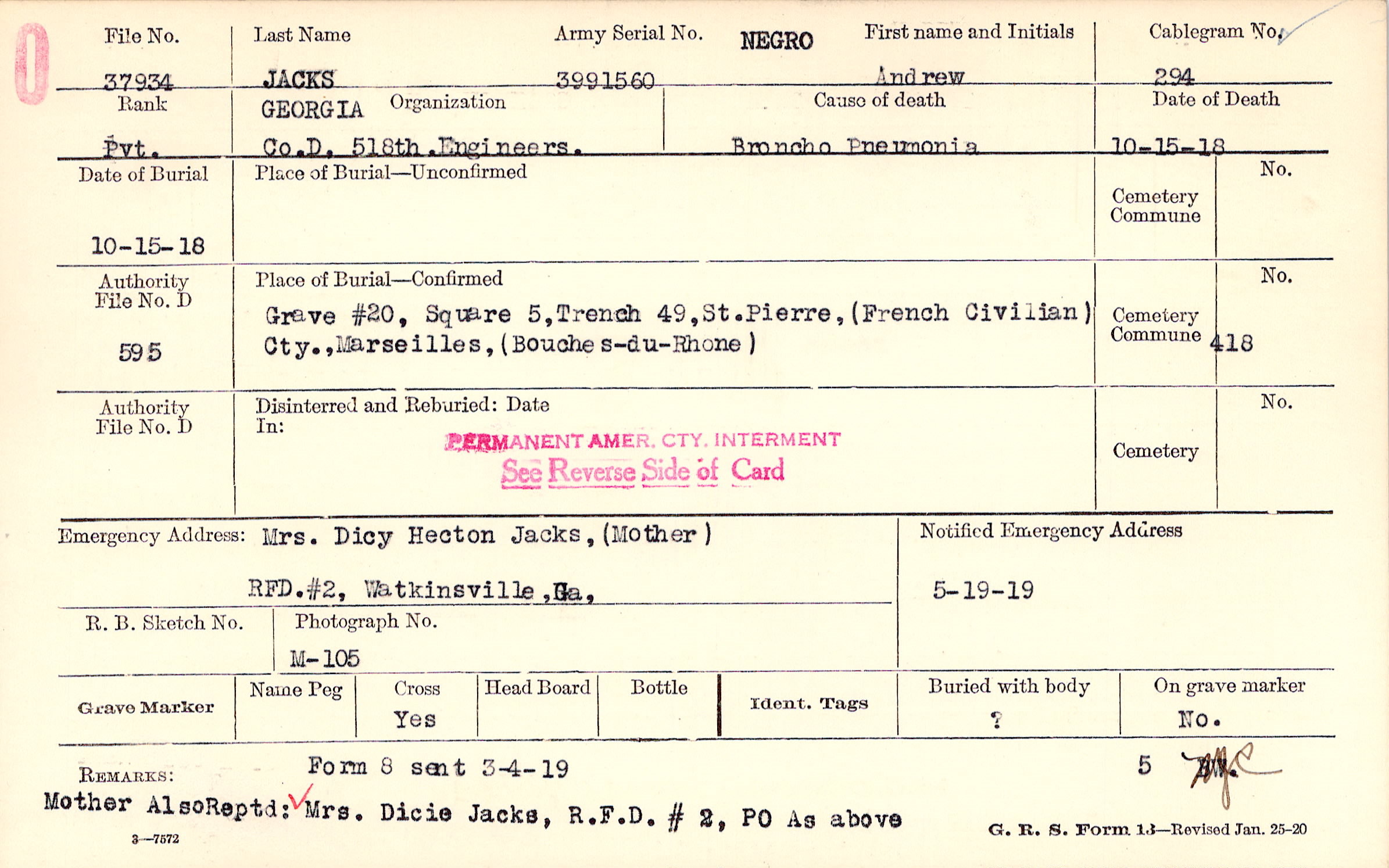 Grave #20, Square 5, Trench 49, St. Pierre, French Civilian Cty., Marseilles, Bouches-du-Rhone