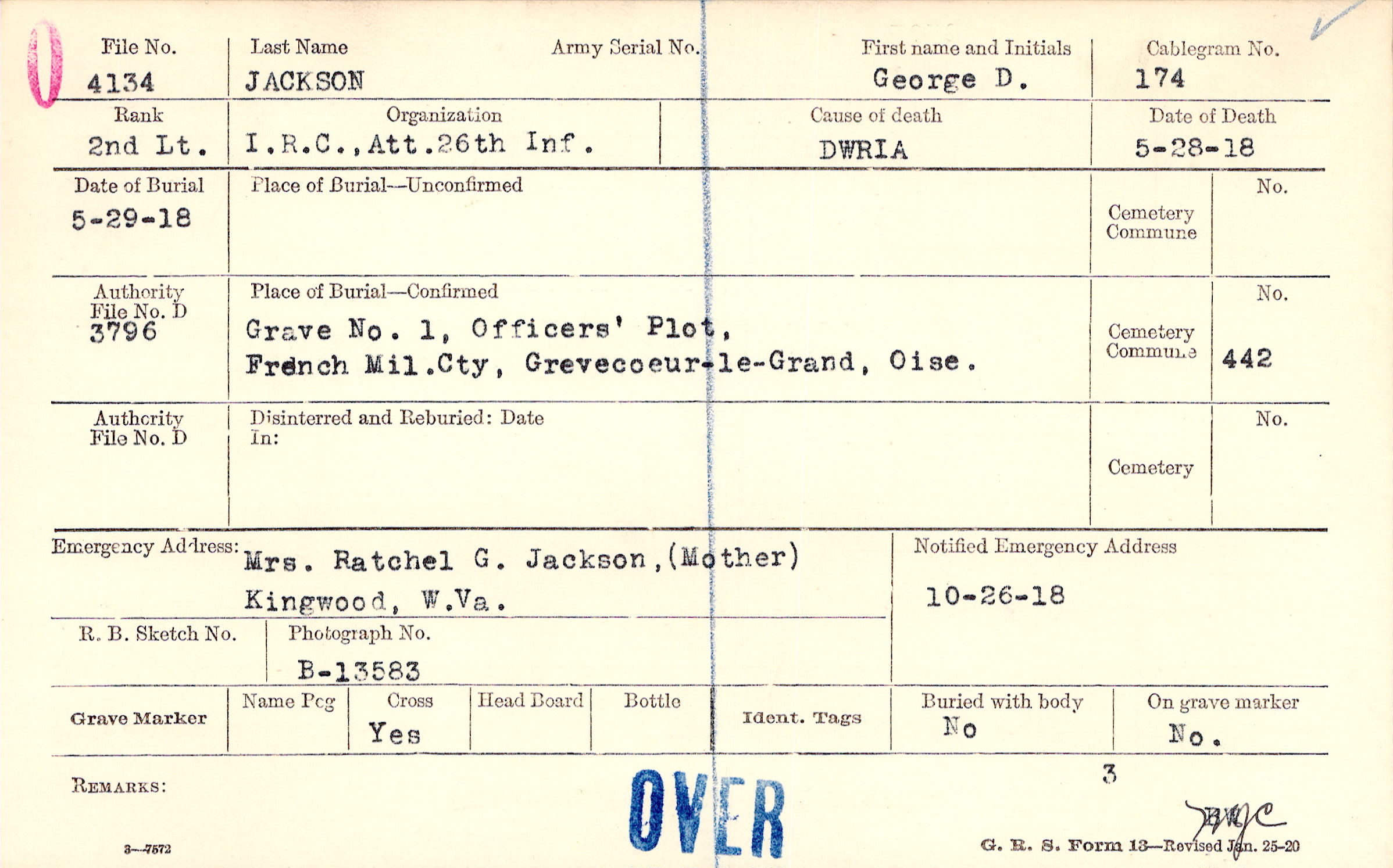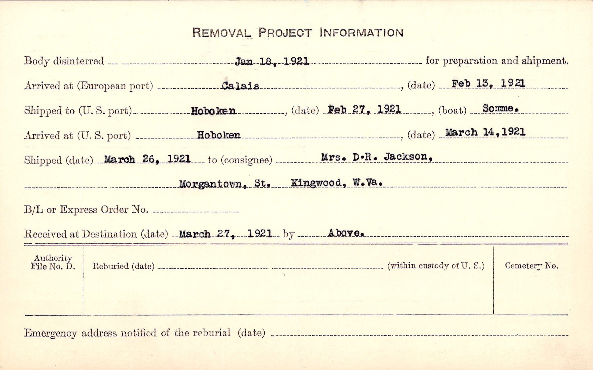 Mrs. Ratchel G. Jackson, (Mother), Kingwood, W.Va.