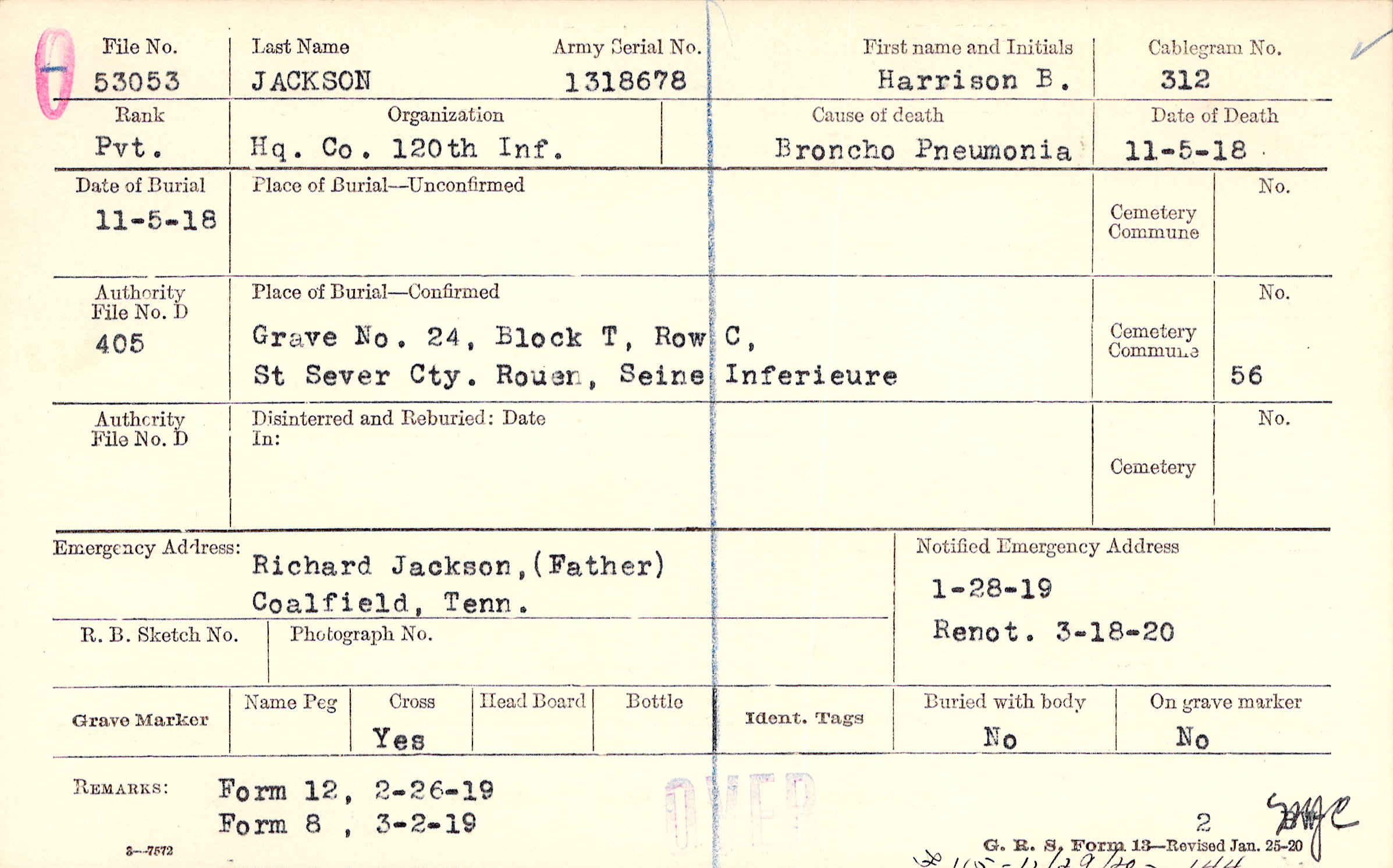 Grave 224, Block T, Row C, St Sever Cty., Rouen, Seine Inferieure