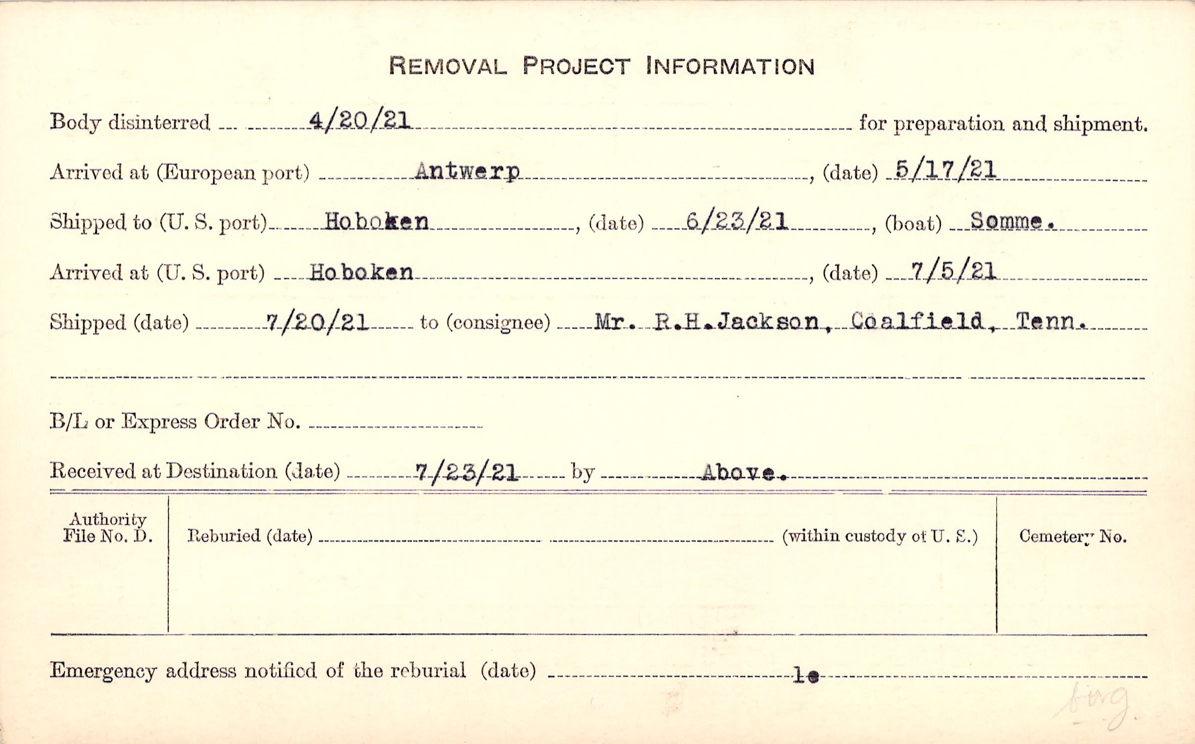 to Mr. R. H. Jackson, Coalfield, Tenn.
