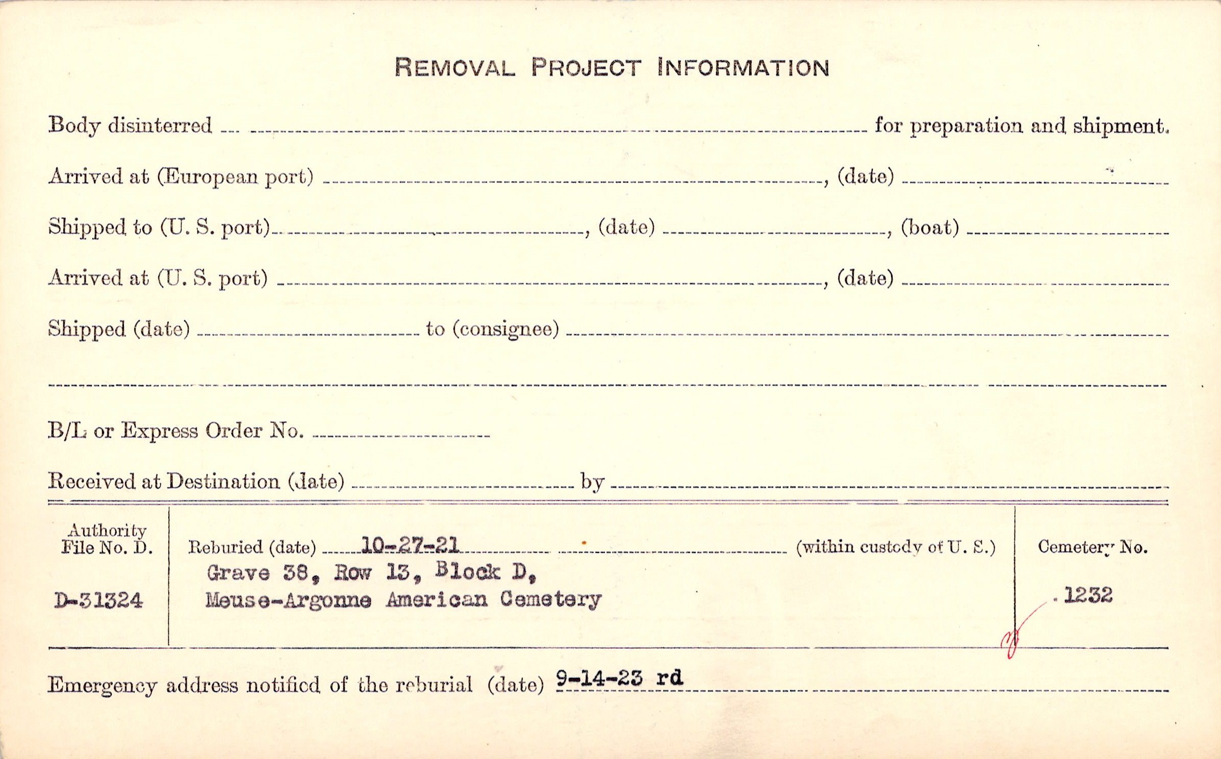 Grave 69, Section 68, Plot 2, Argonne American Cemetery, Romagne-sous-Montfaucon, Meuse