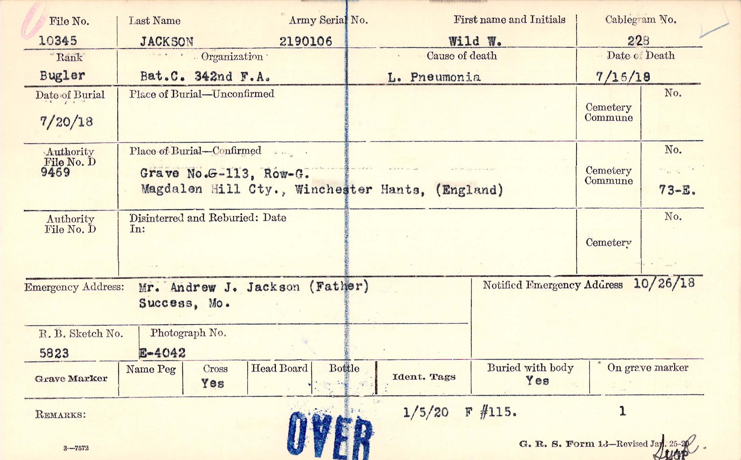 Grave G-113, Row G.,Magdalen Hill Cty., Winchester Hants, England.