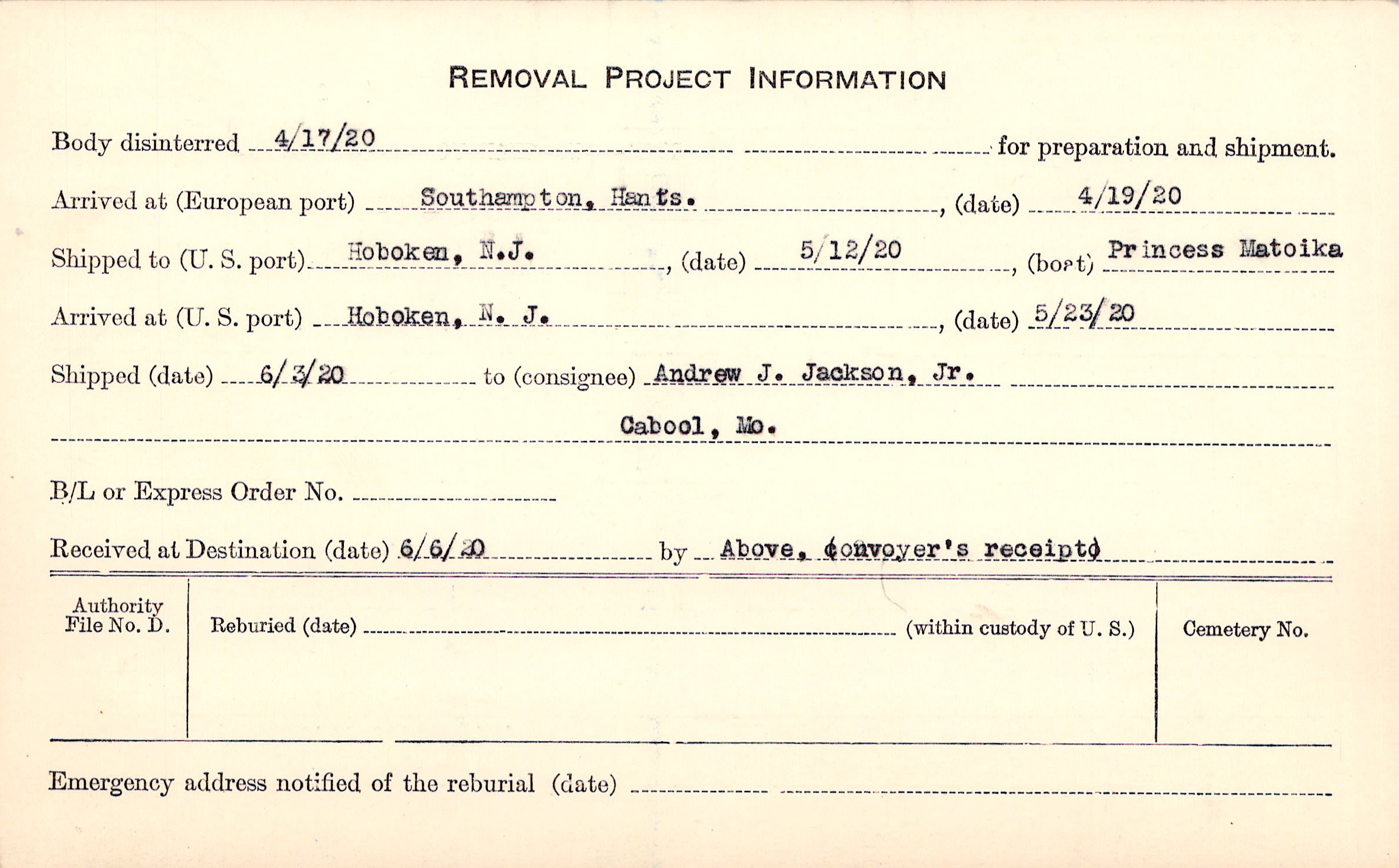 to Andrew J. Jackson, Jr. Cabool, Mo.