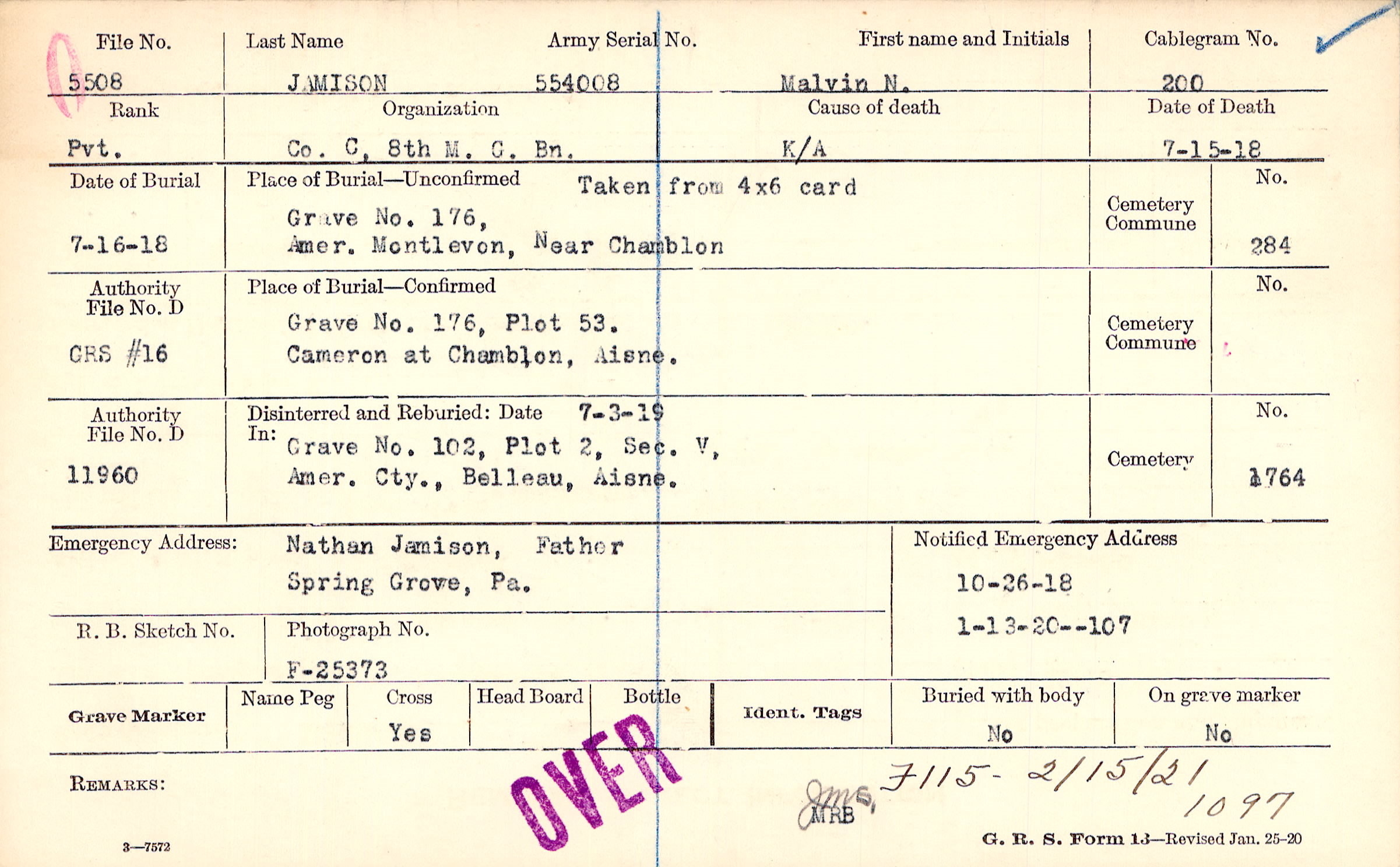 Grave No. 176, Plot 53.,Amer. Montlevon, Near Chamblon