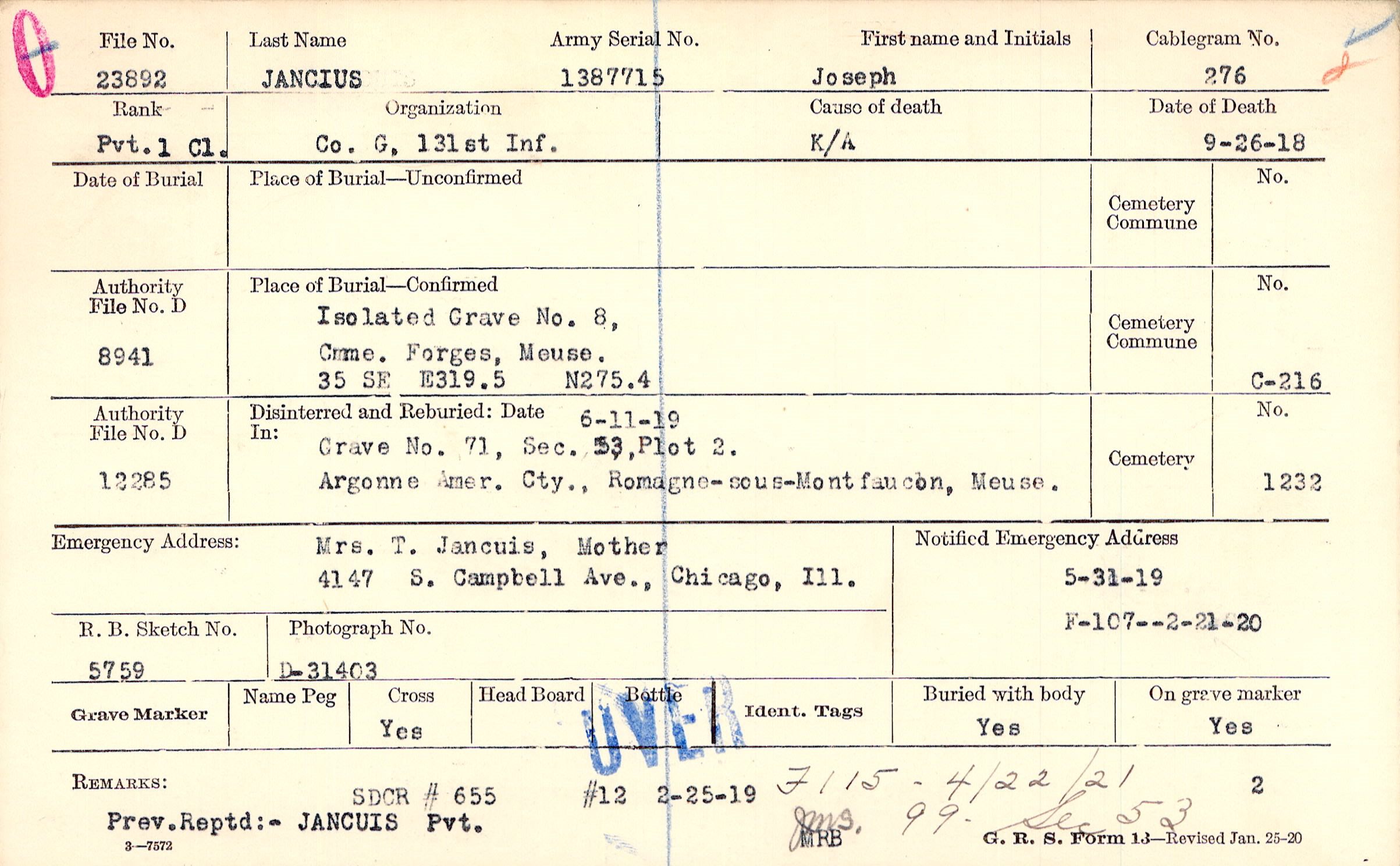 Isolated Grave 8, Cmme. Forges, Meuse., 35 SE