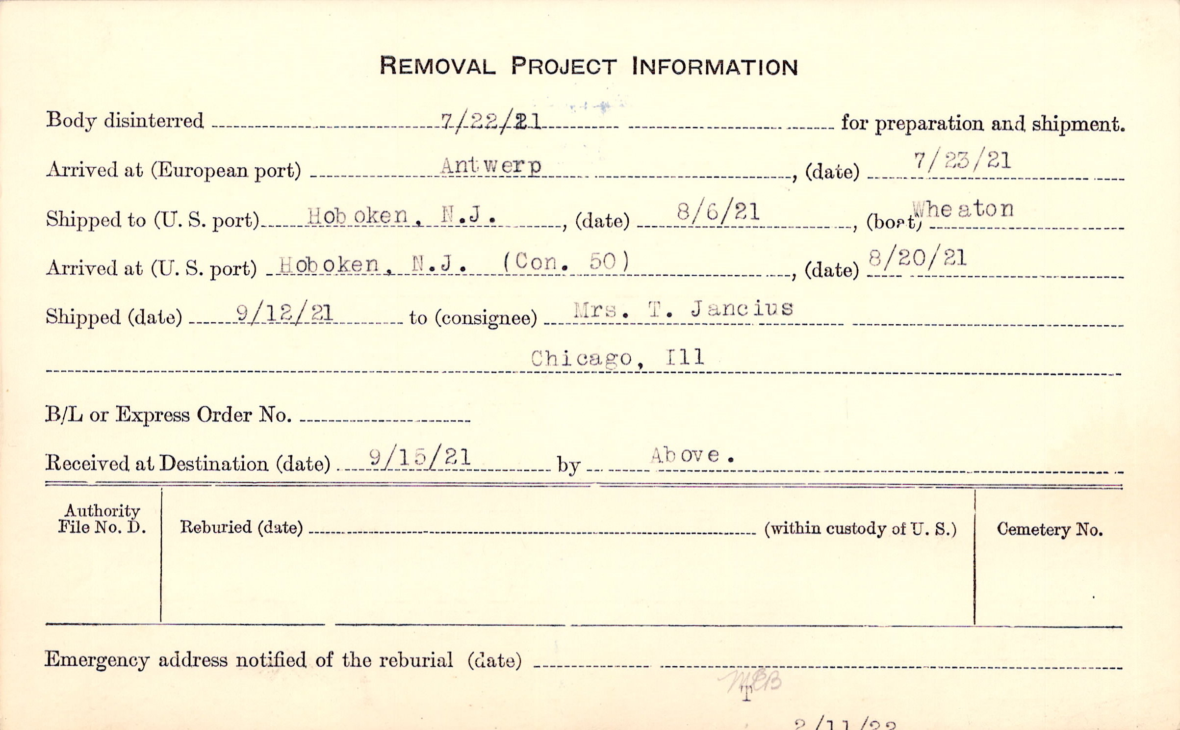 Mrs. T. Jancuis, Mother, 4147 S. Campbell Ave., Chicago, Ill.