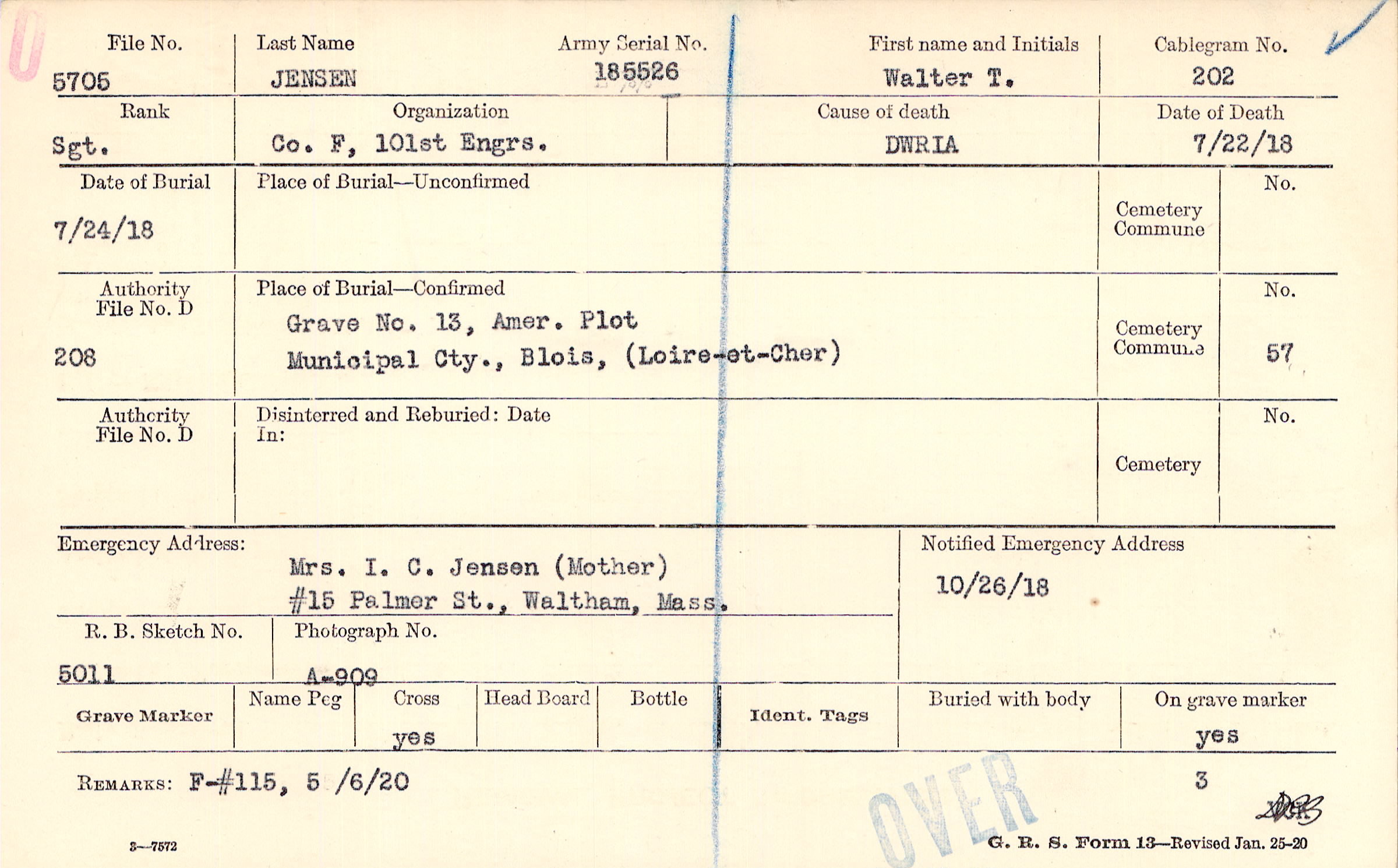 Grave 13, Amer. Plot, Municipal Cty., Blois, (Loire-et-Cher)