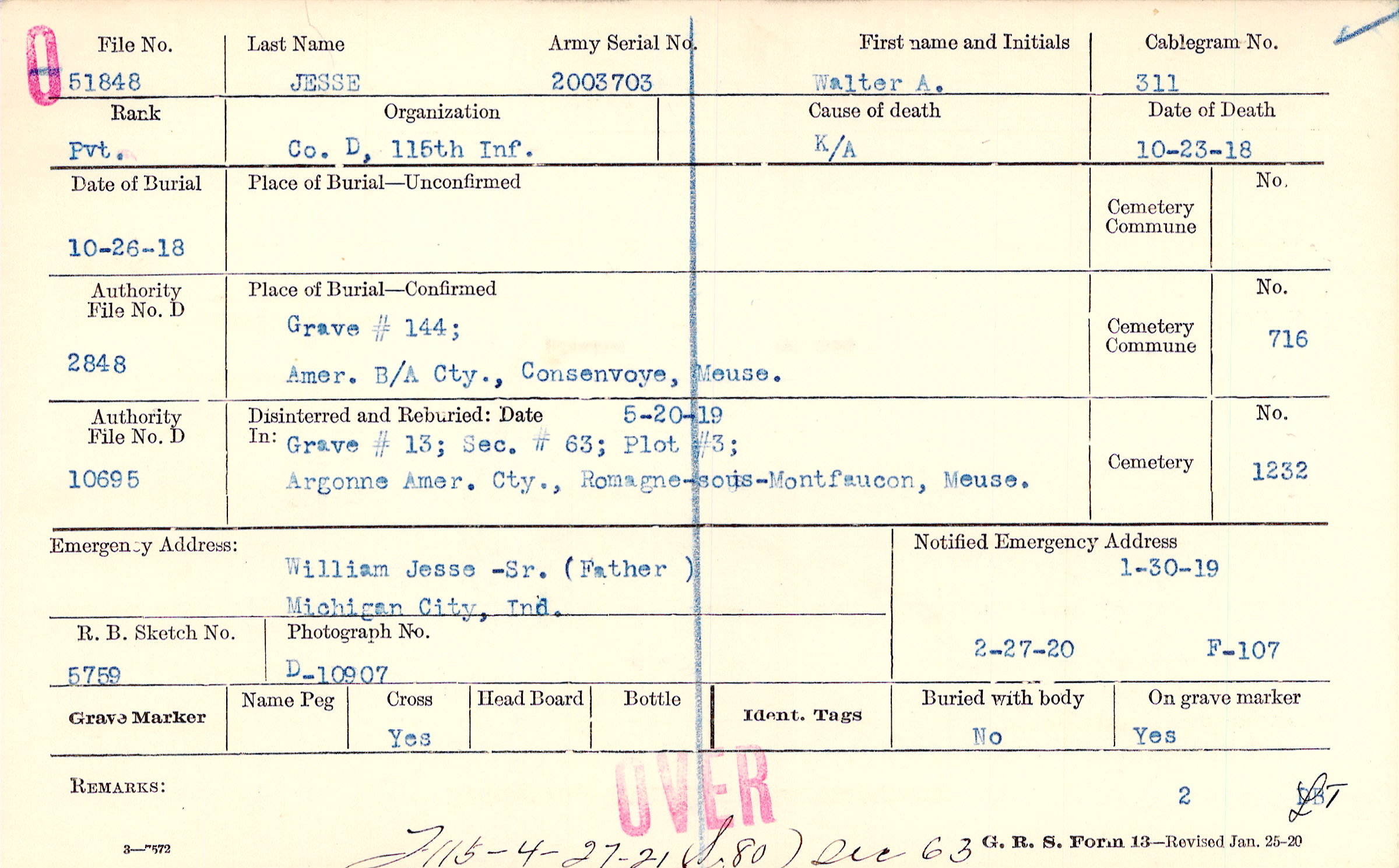 1/30/1919, Form 107: 2/27/1920