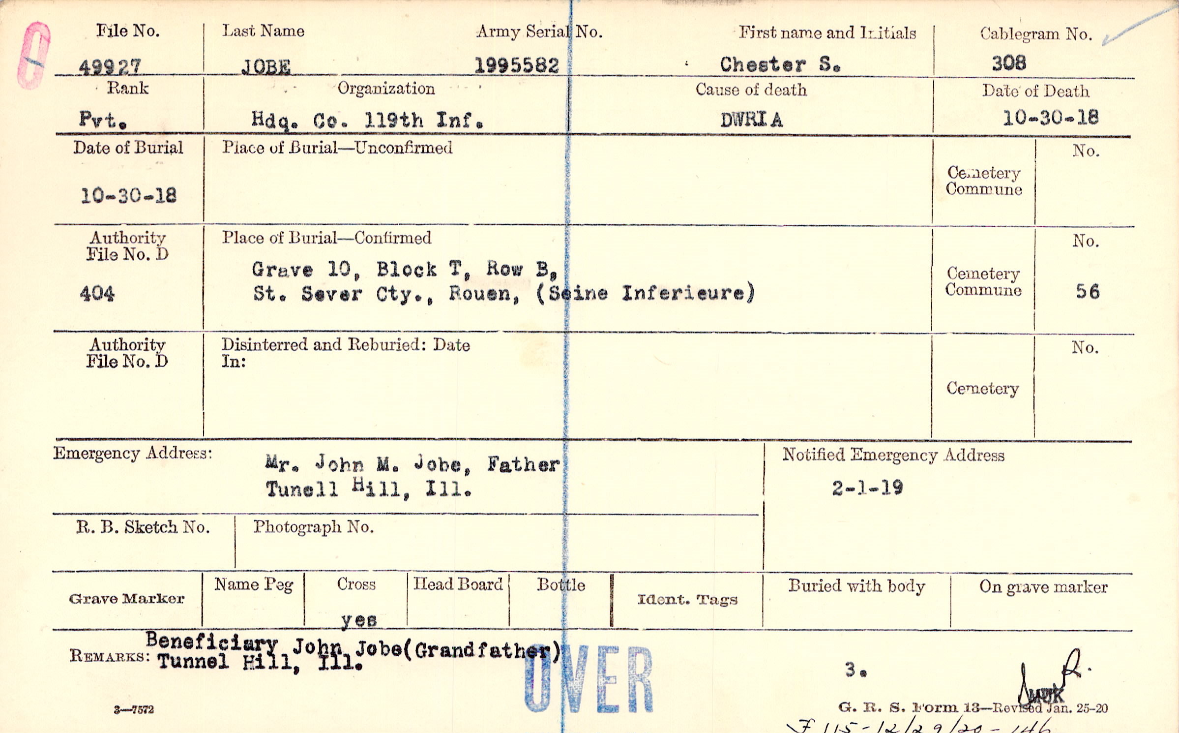 Beneficiary John Jobe (Grandfather), Tunnel Hill, Ill., F115 - 12/29/20 - 146