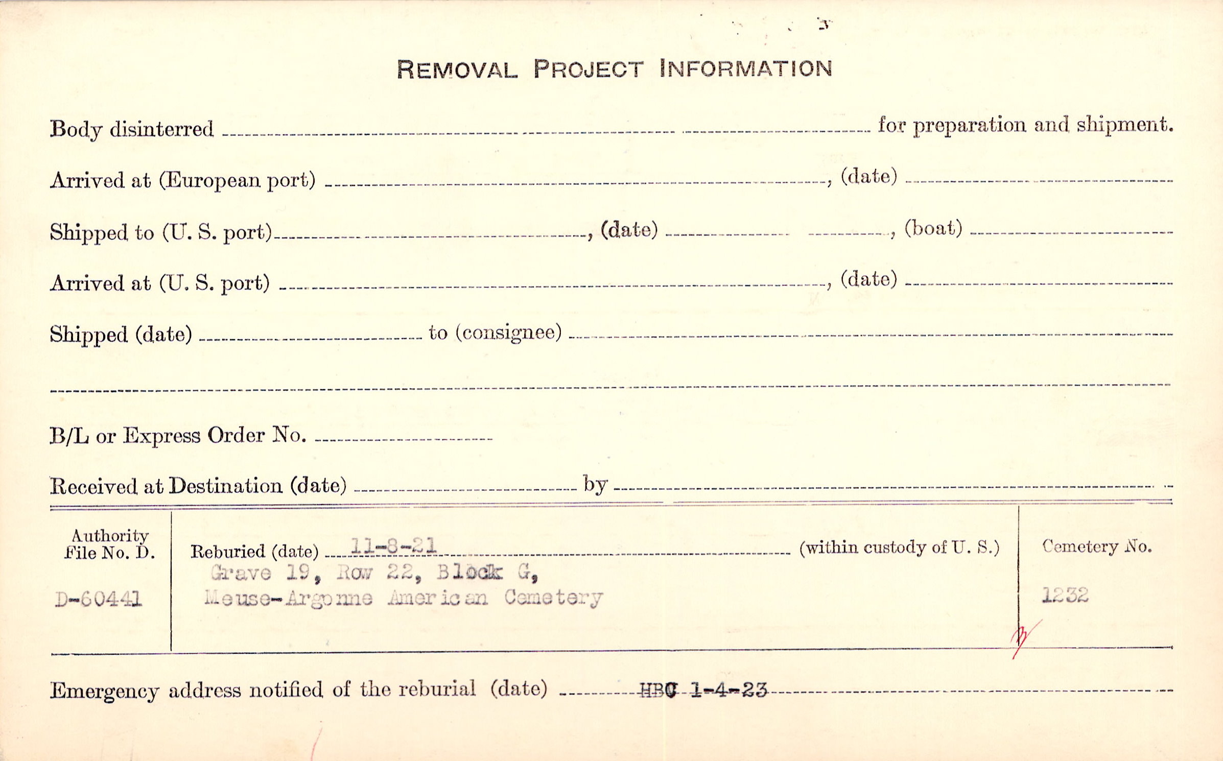 | Permanent Burial in Foreign Cemetery |