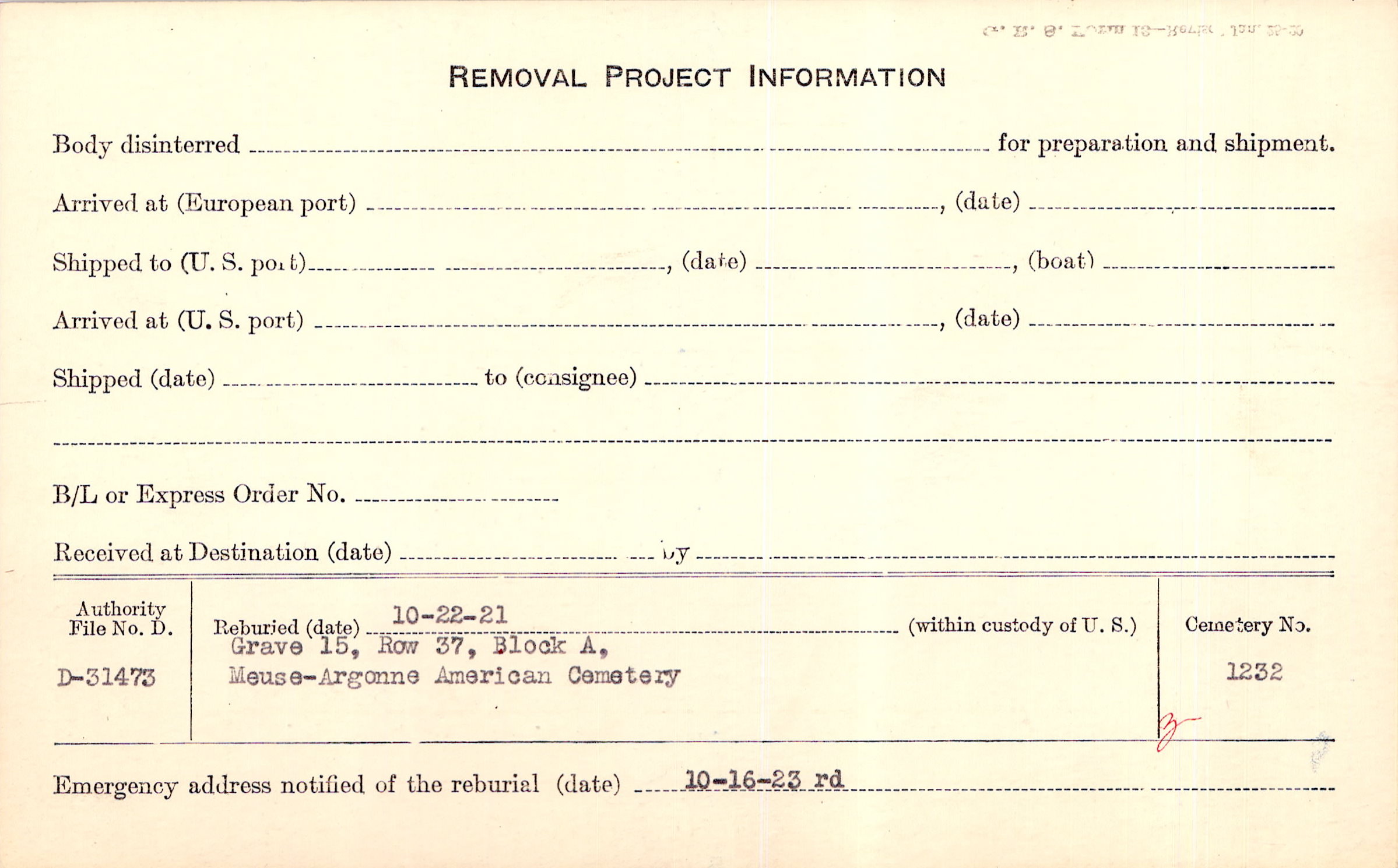 | Permanent Burial in Foreign Cemetery |