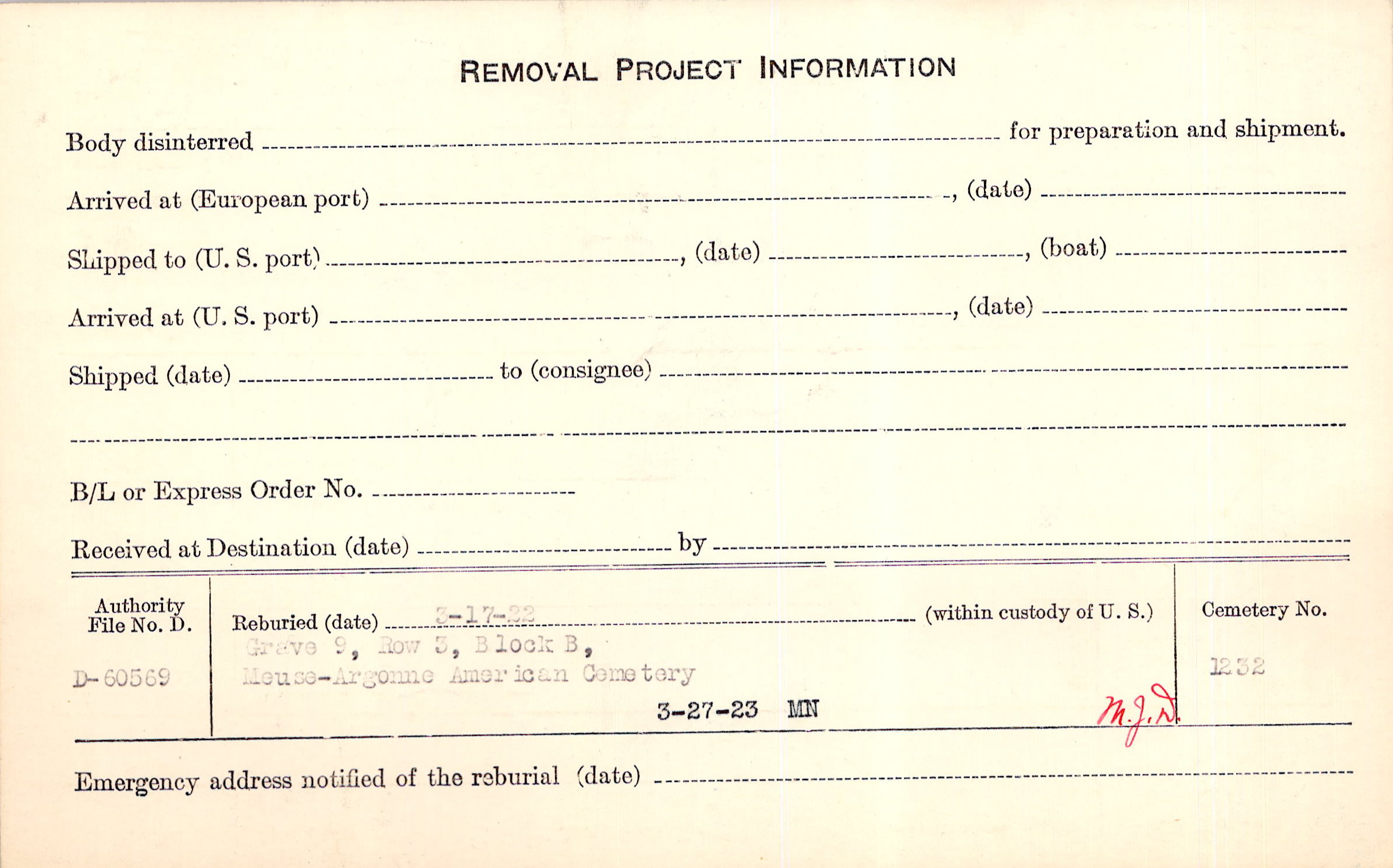 Grave 15, Plot B, American Cty., Rampont, Meuse
