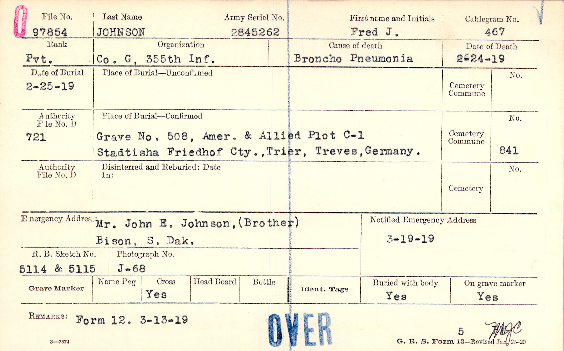 Grave 508, Amer. & Allied Plot C-1, Stadtisha Friedhof Cty., Trier, Treves, Germany.
