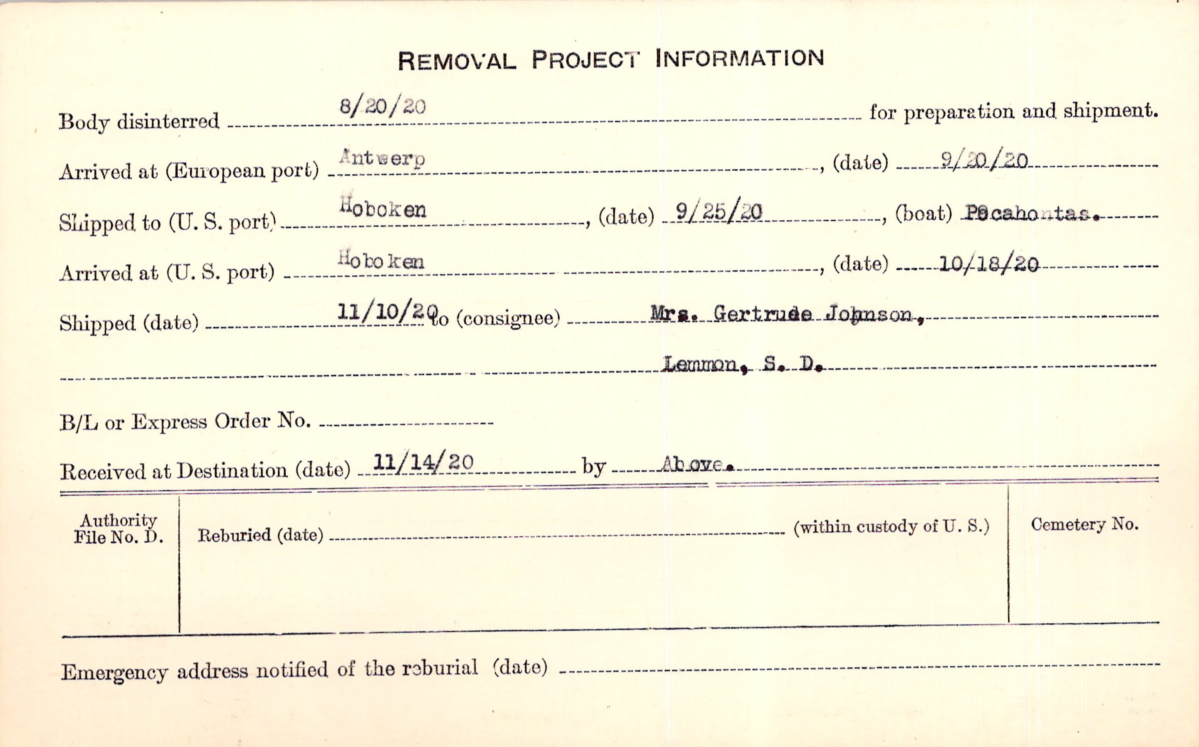 to Mrs. Gertrude Johnson, Lemmon, S. D.