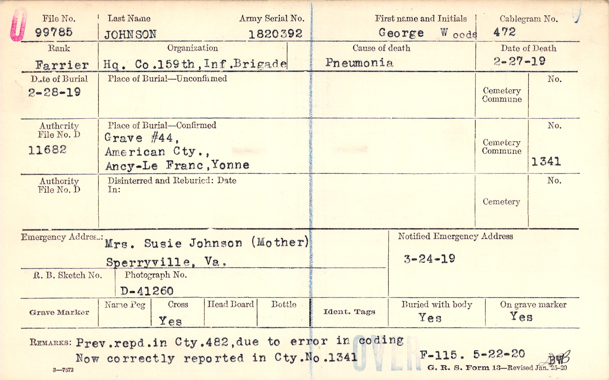 Grave #44, American Cty., Ancy-Le Franc, Yonne