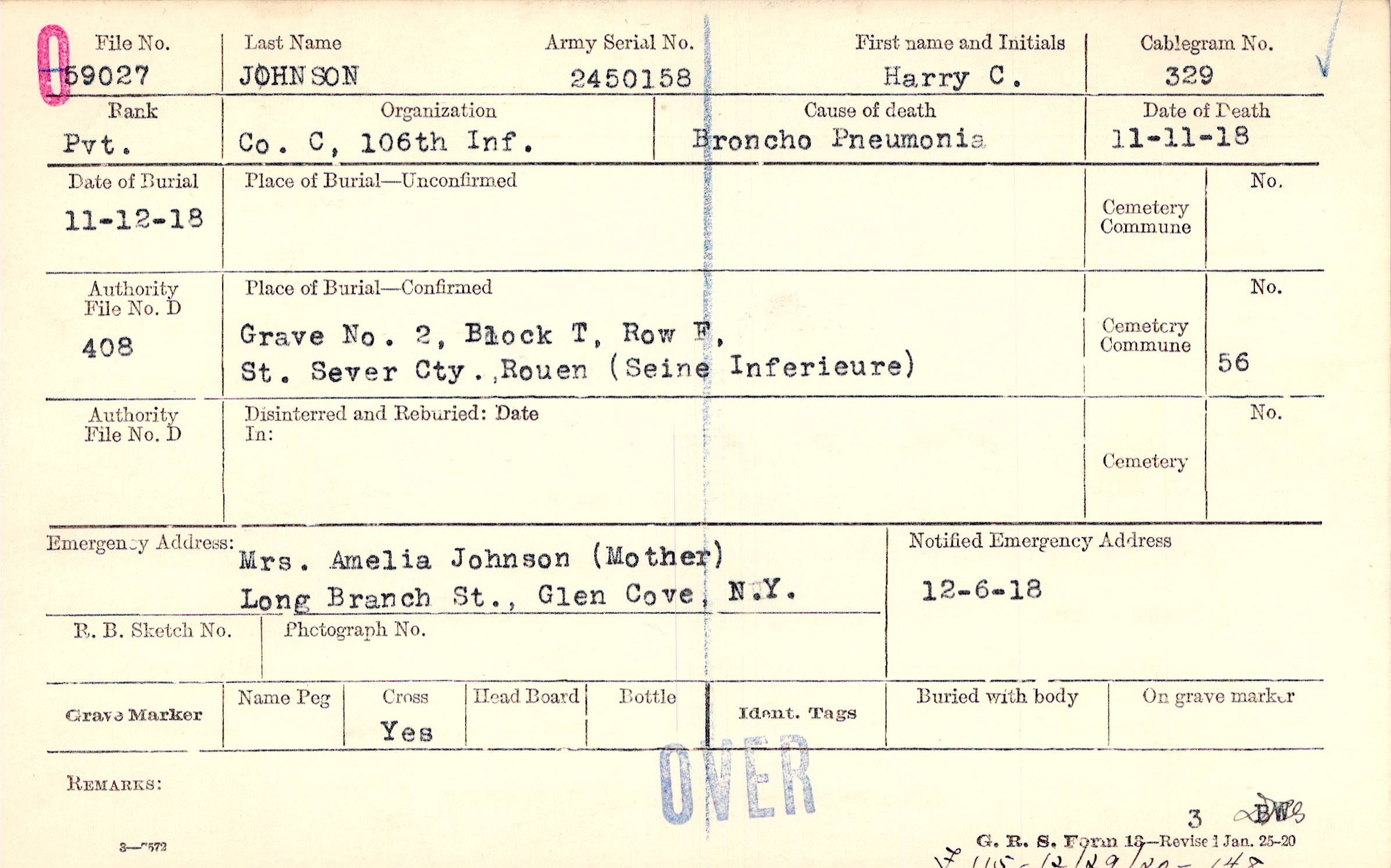 Grave 2, Block T, Row F, St. Sever Cty., Rouen (Seine Inferieure)