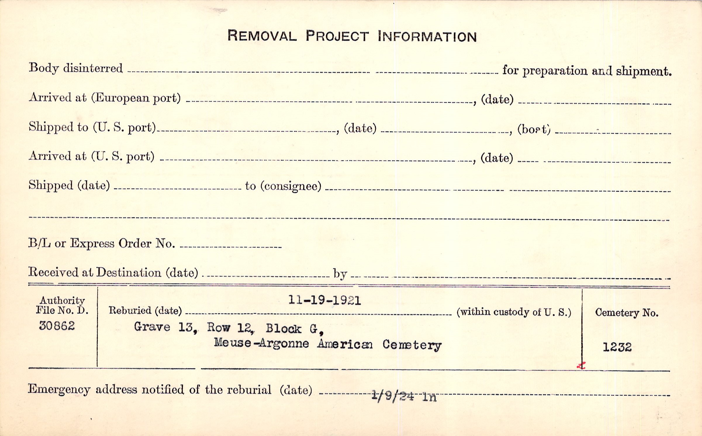 Grave 148, Section 89, Plot 3, Argonne American Cemetery, Romagne-sous-Montfaucon, Meuse