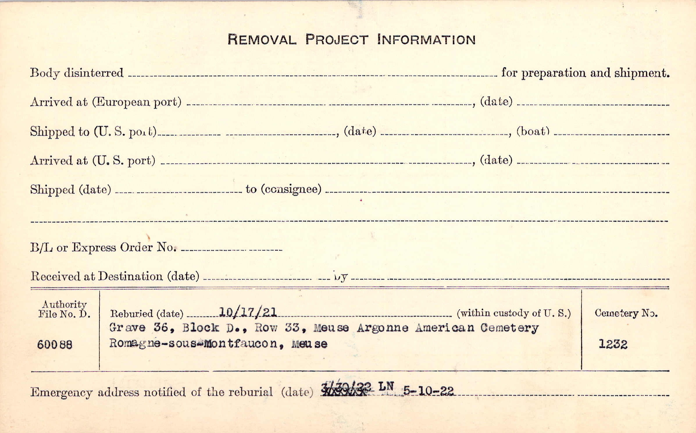 | Permanent Burial in Foreign Cemetery |