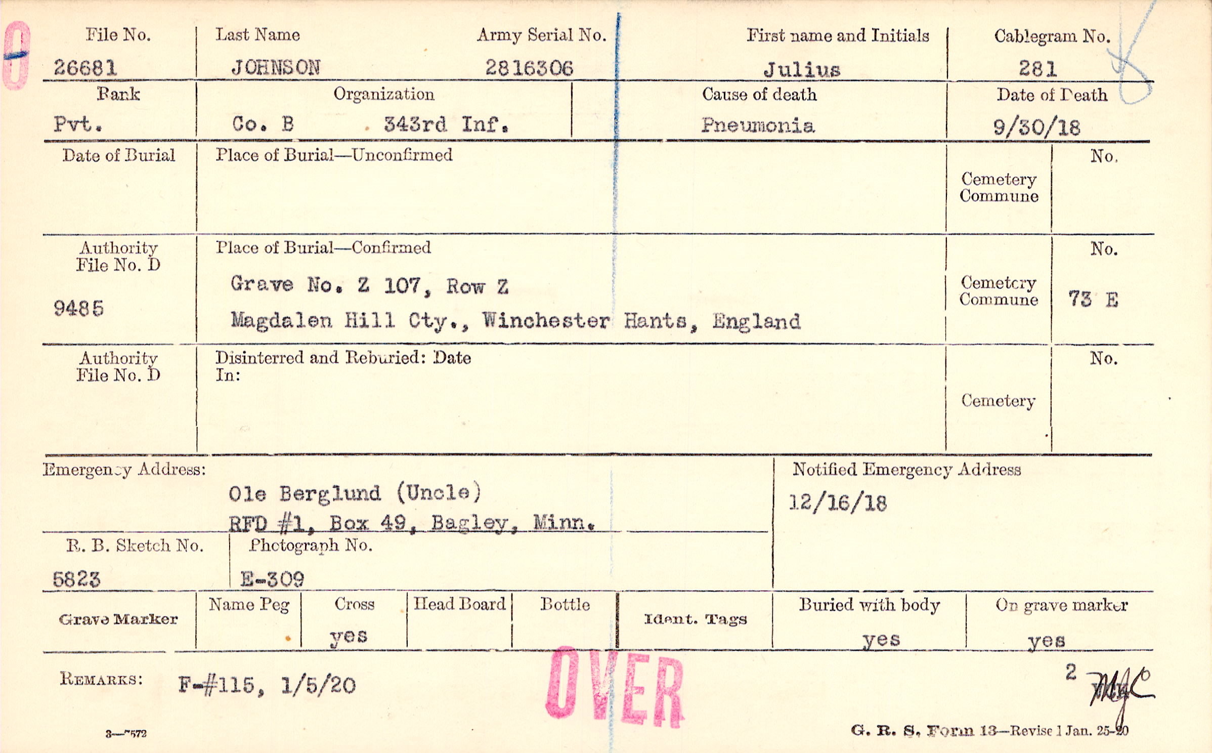 Grave Z 107, Row Z, Magdalen Hill Cty., Winchester, Hants, England