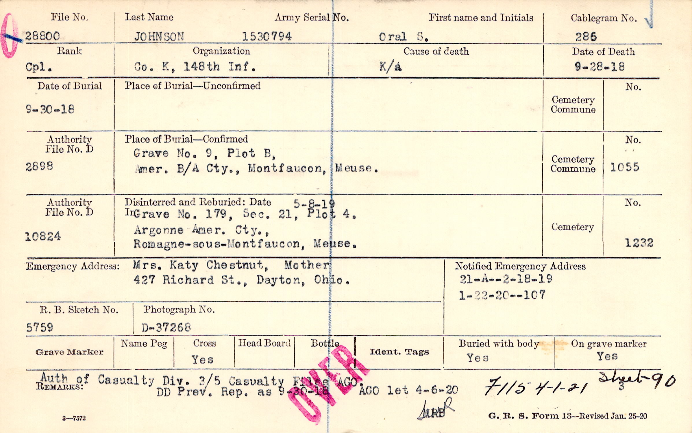 Grave 179, Section 21, Plot 4, Argonne American Cemetery, Romagne-sous-Montfaucon, Meuse