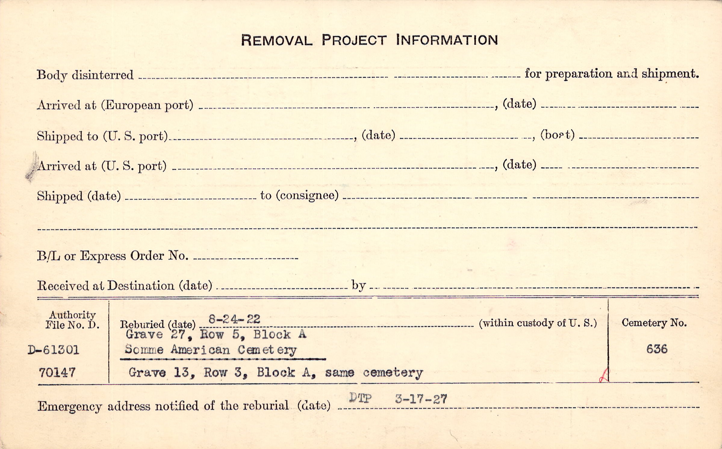 Prior Burial in Foreign Cemetery |