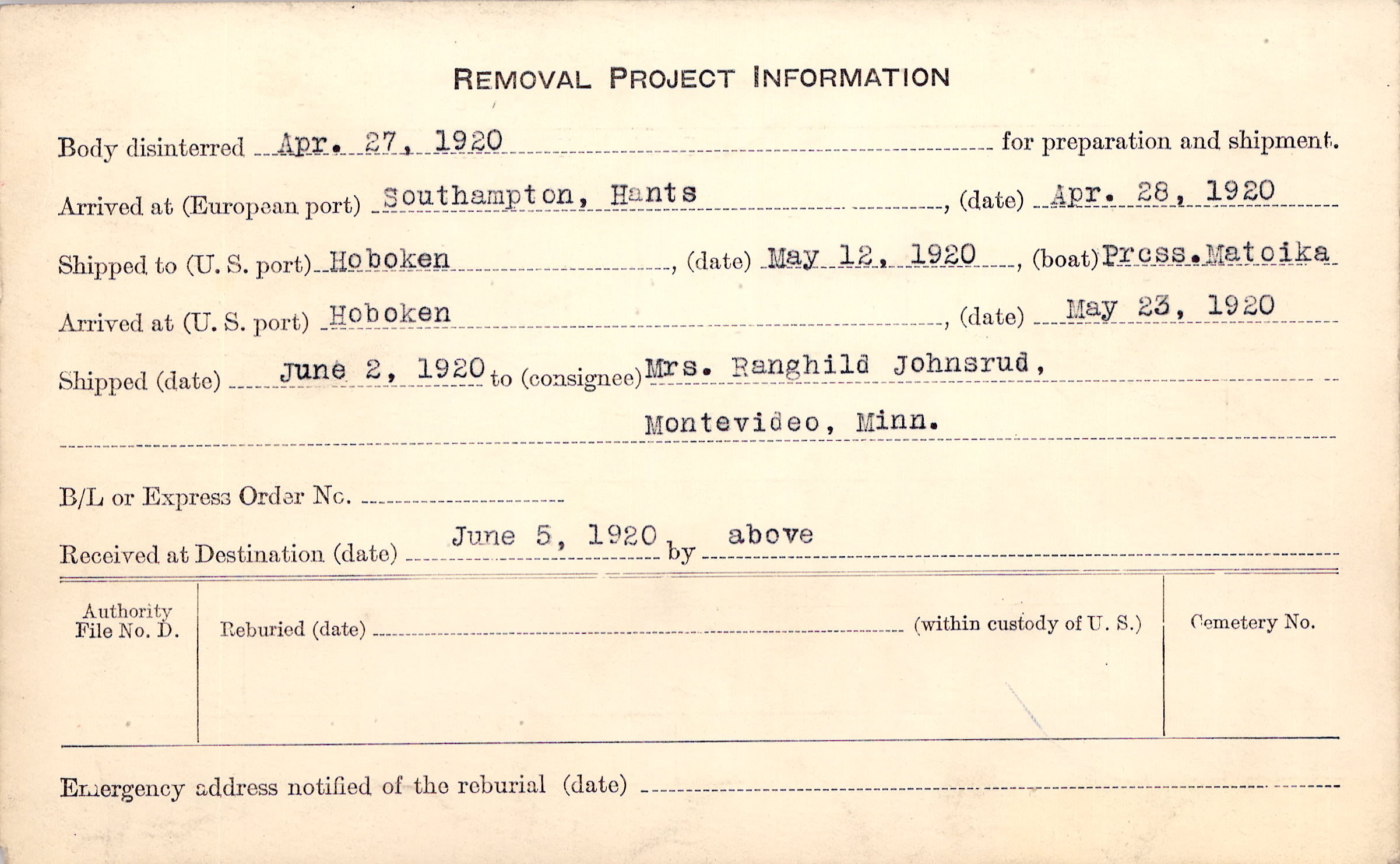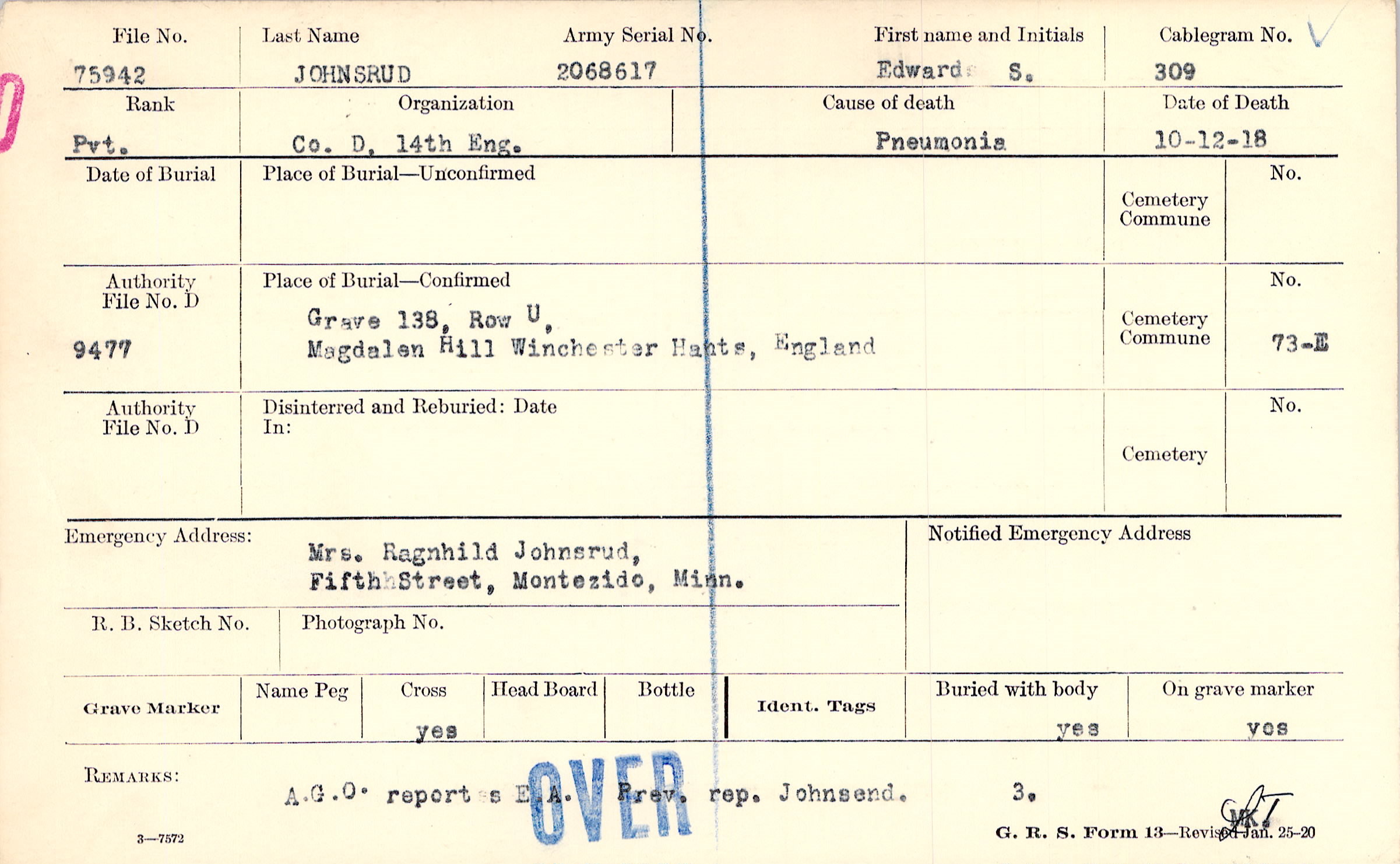 to Mrs. Ranghild Johnsrud, Montevideo, Minn.