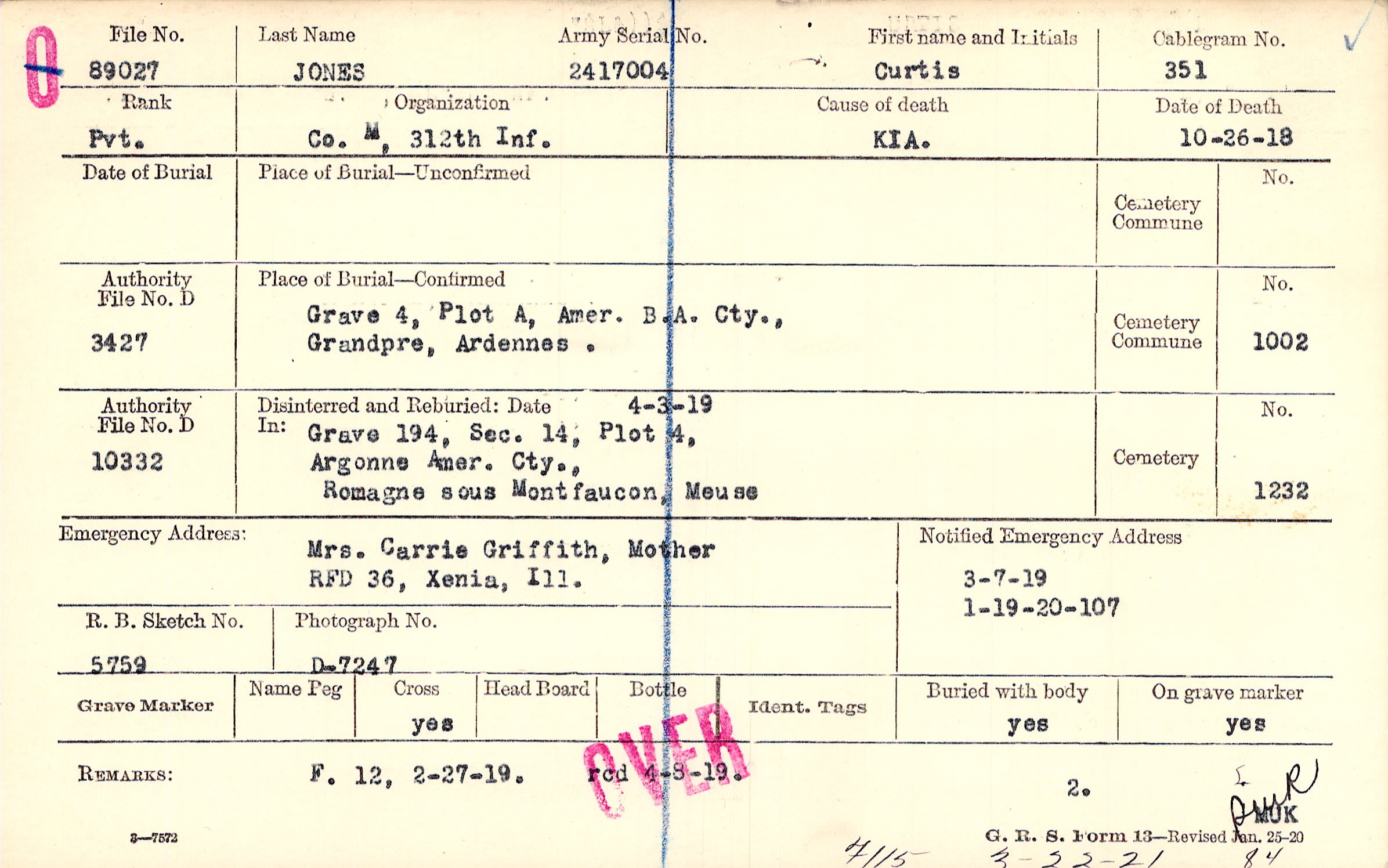 3/7/1919, Form 107: 1/19/1920