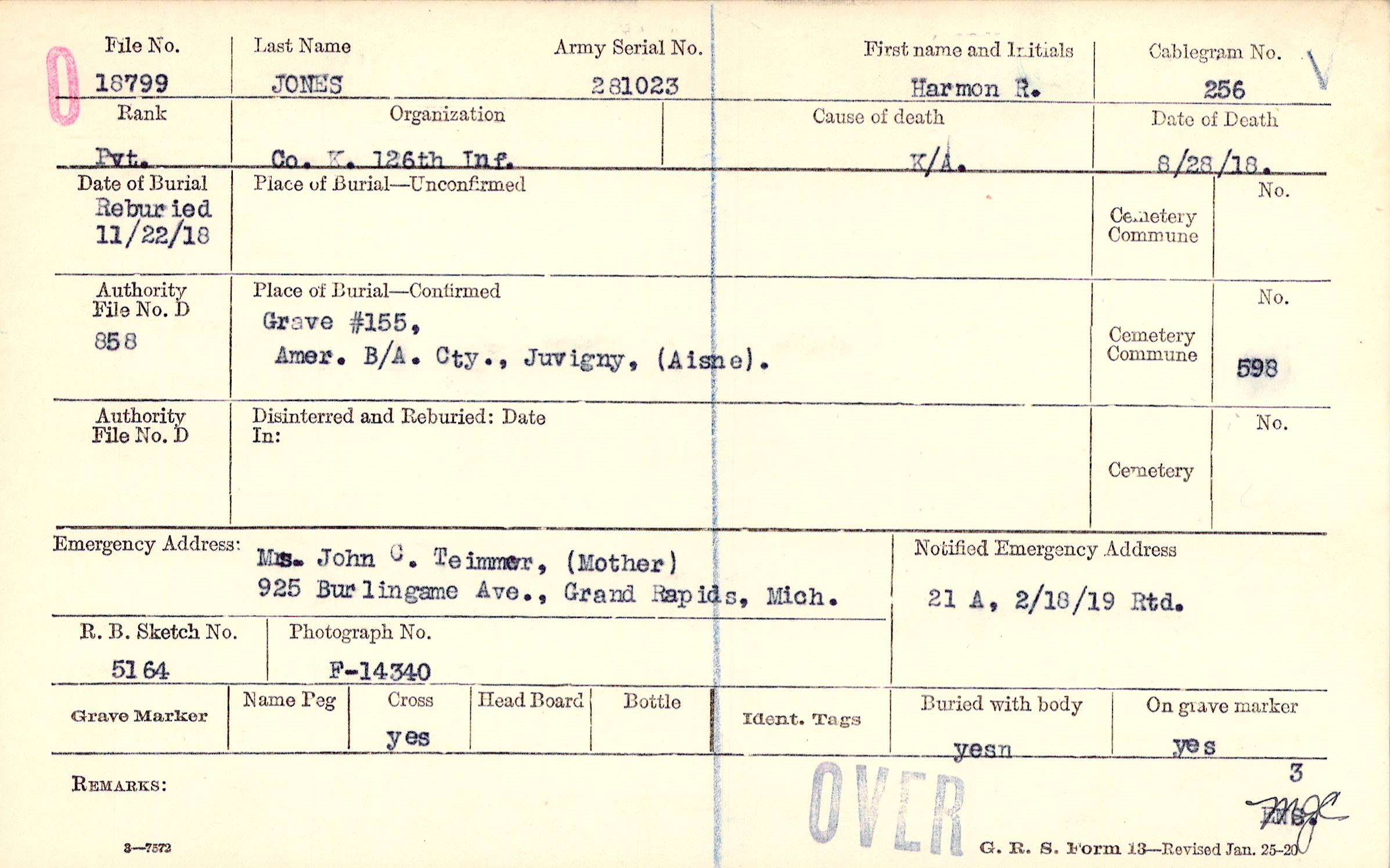Grave #155, Amer. B/A Cty., Juvigny, Aisne
