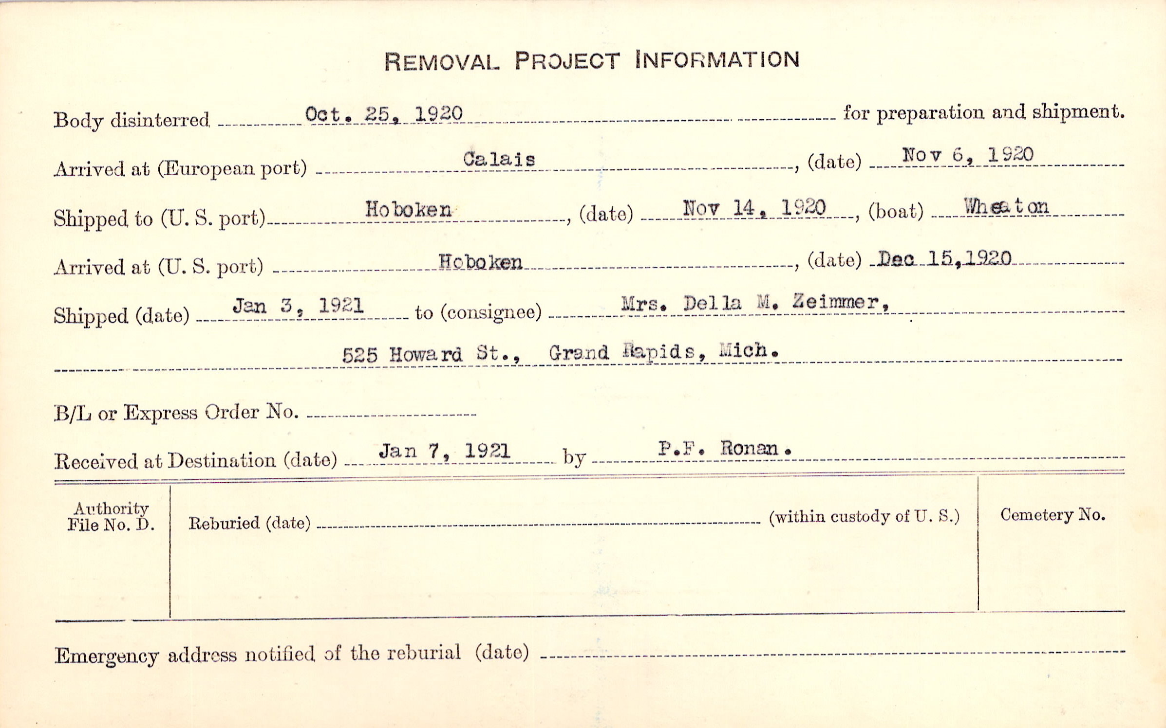 to Mrs. Della M. Zeimmer, 525 Howard St., Grand Rapids, Mich.