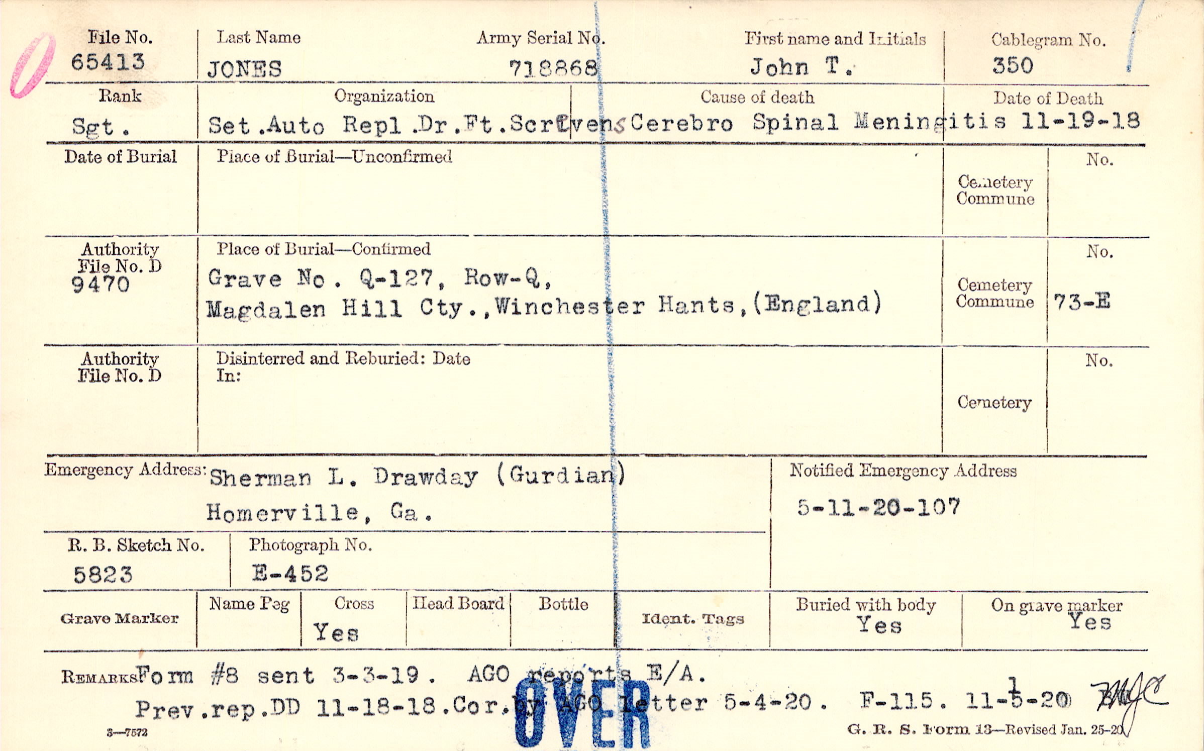 Grave Q-127, Row Q, Magdalen Hill Cty., Winchester, Hants, England