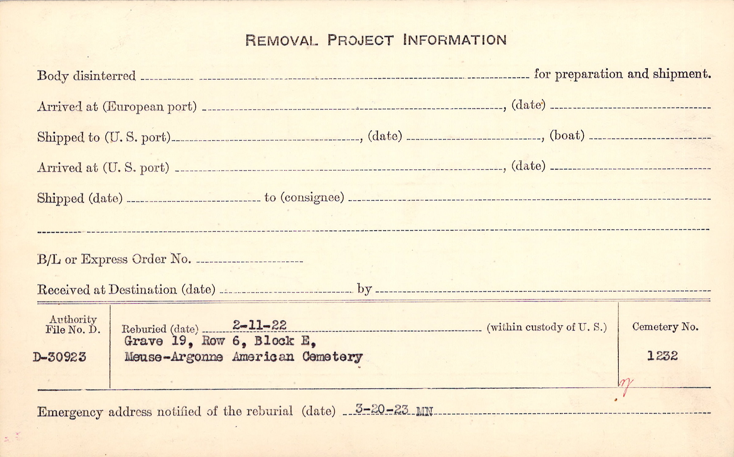 | Permanent Burial in Foreign Cemetery |