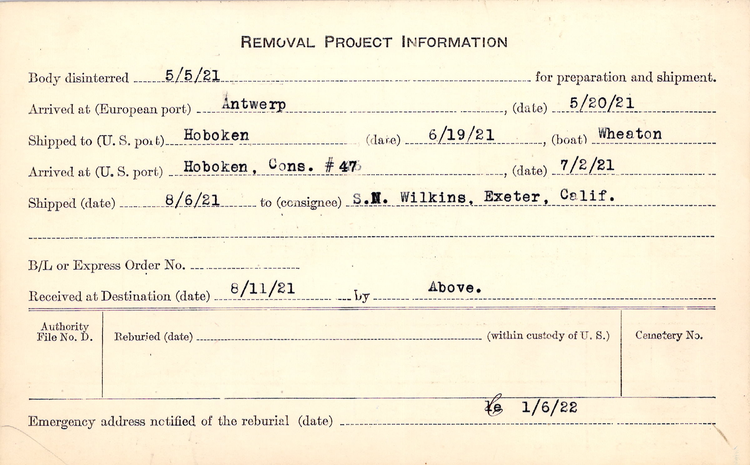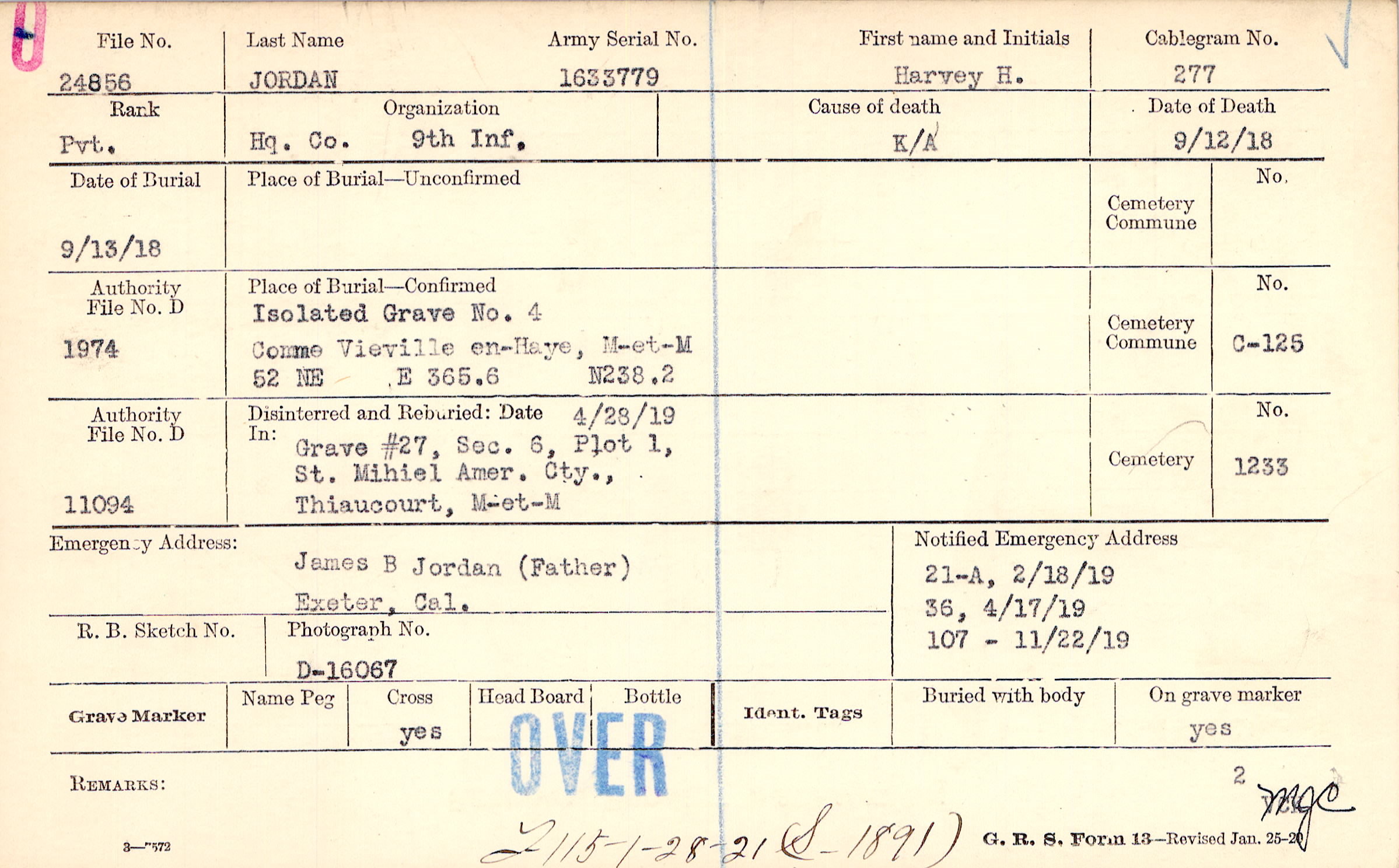 Form 21A: , 2/18/1919, Form 36: , 4/17/1919, Form 107: 11/22/1919