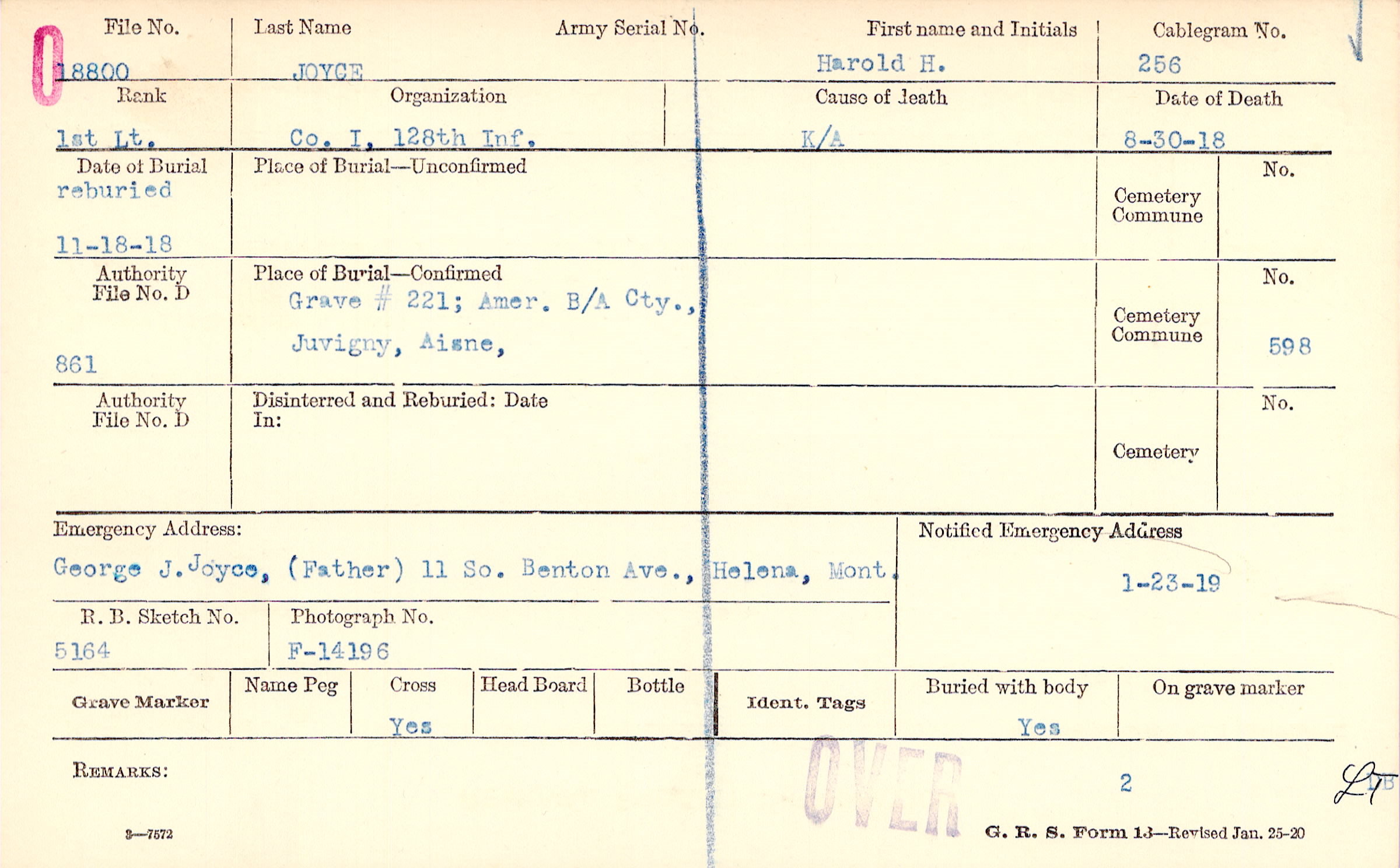 George J. Joyce, (Father), 11 So. Benton Ave., Helena, Mont.