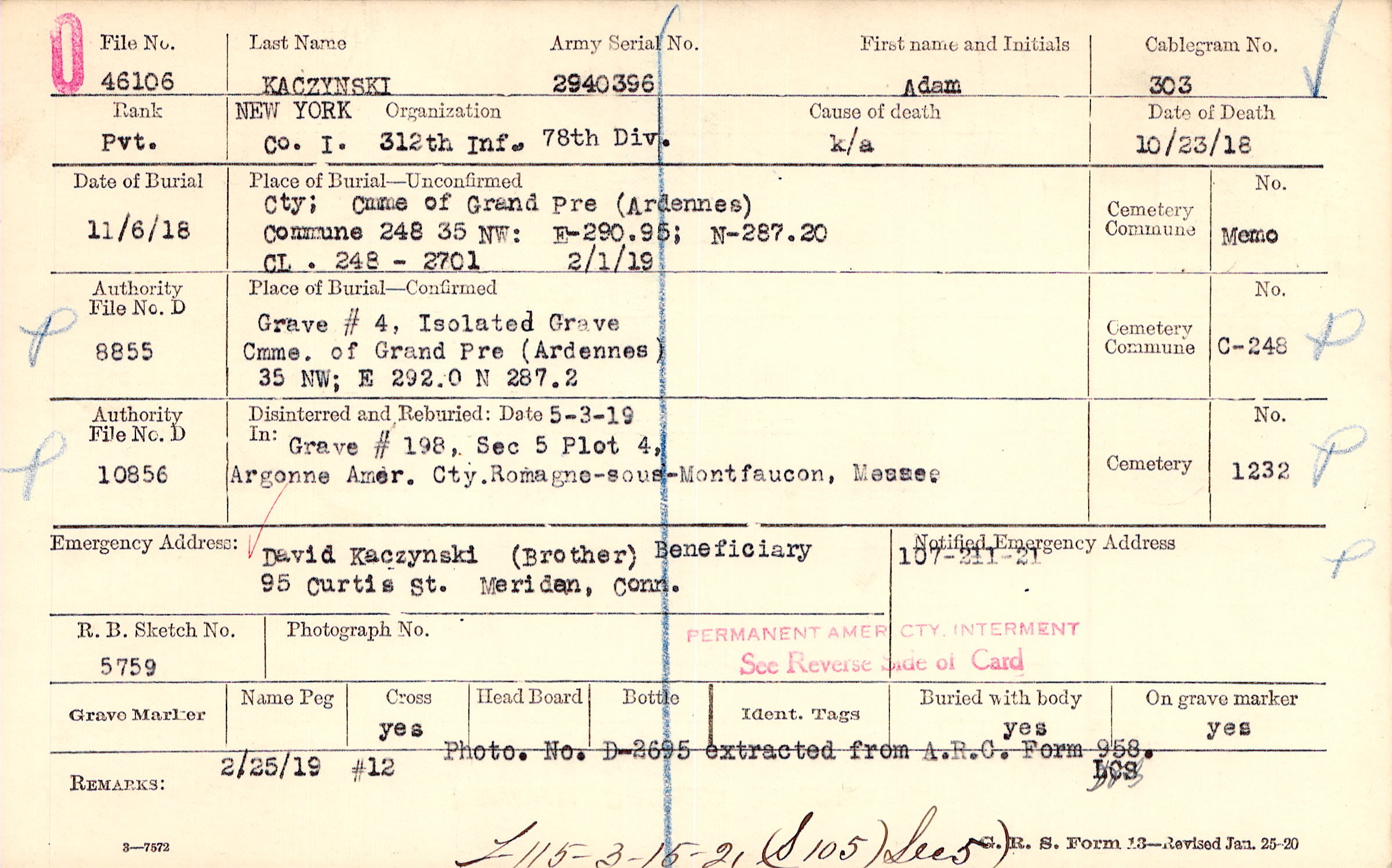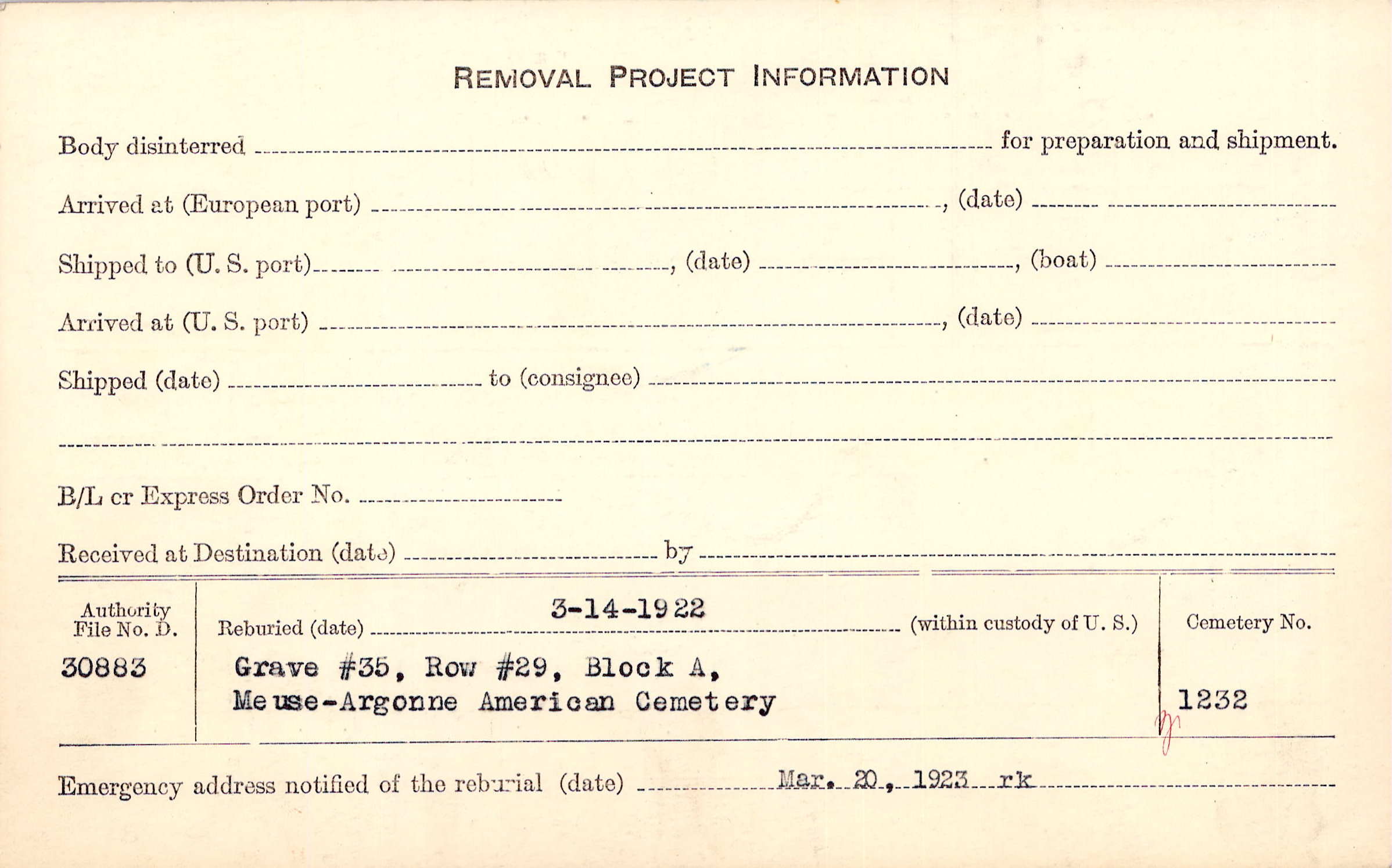 Grave 198, Section 5, Plot 4, Argonne American Cemetery, Romagne-sous-Montfaucon, Meuse